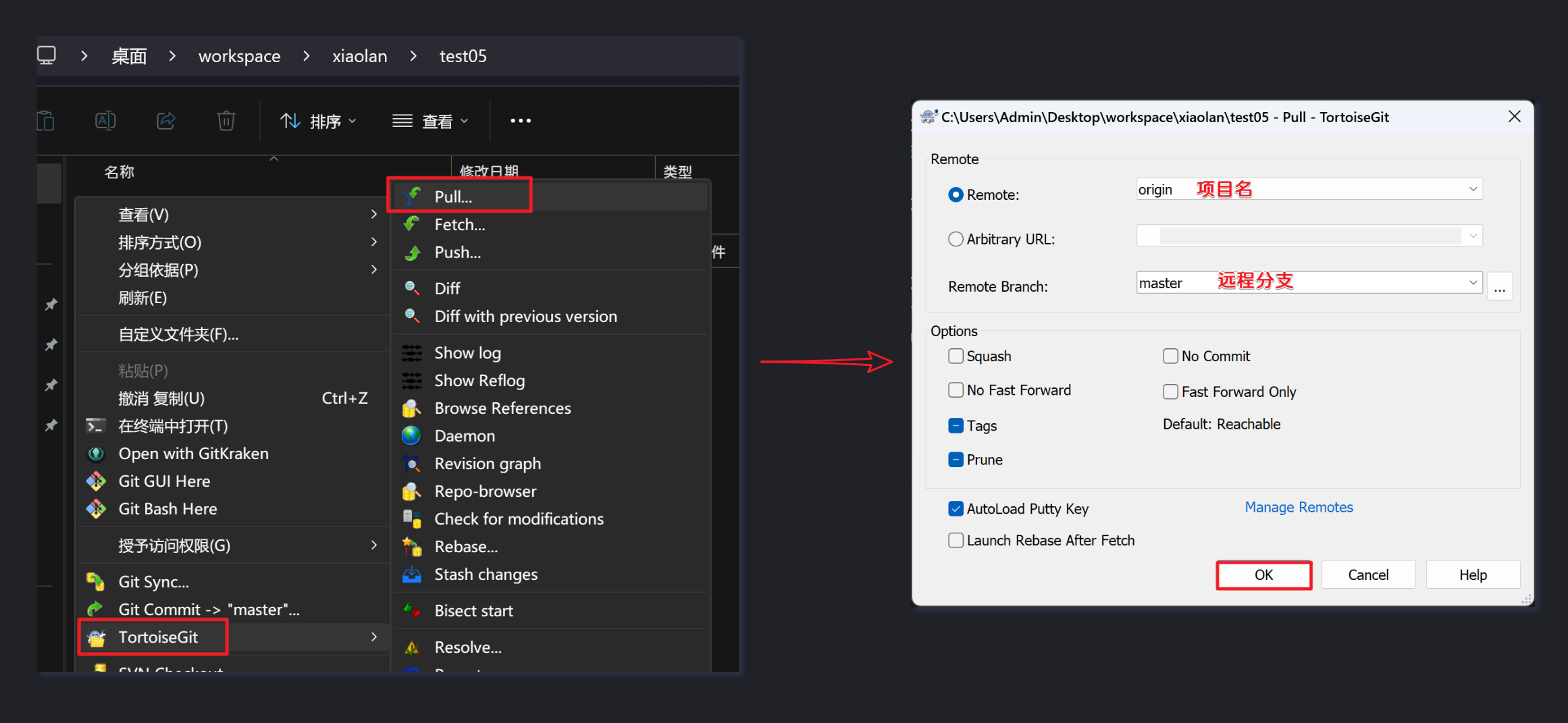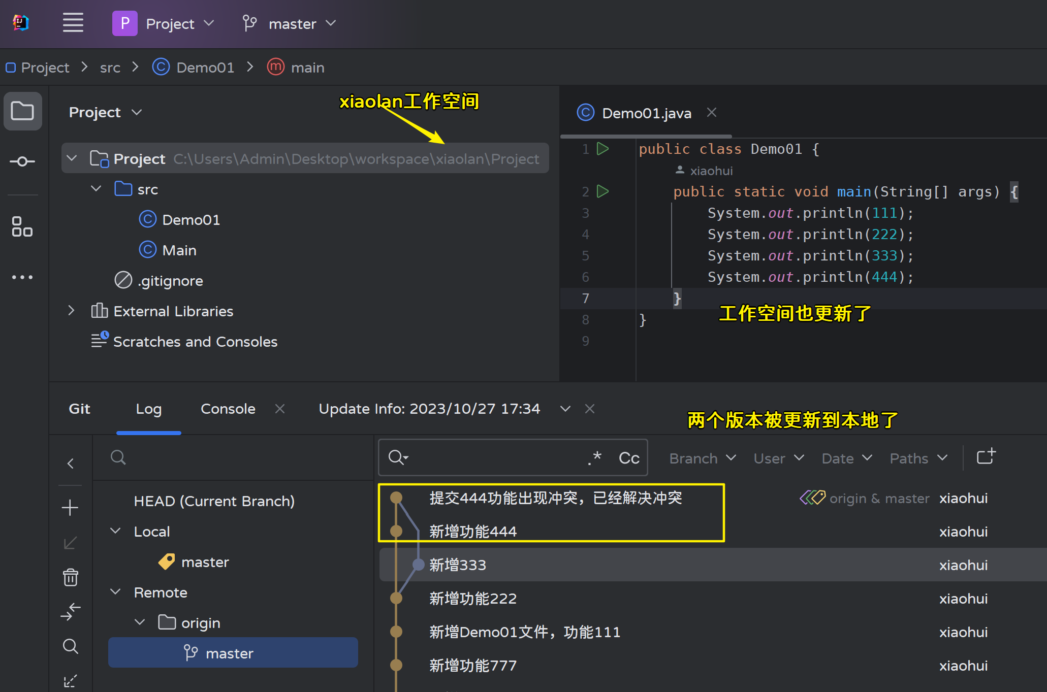 - 2)在xiaolan工作空间执行pull操作: