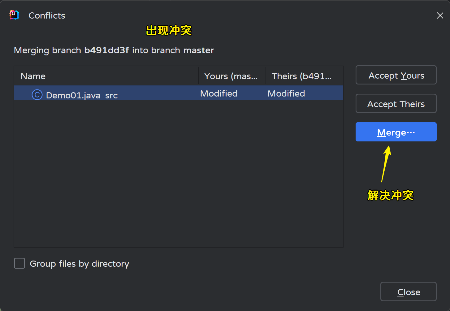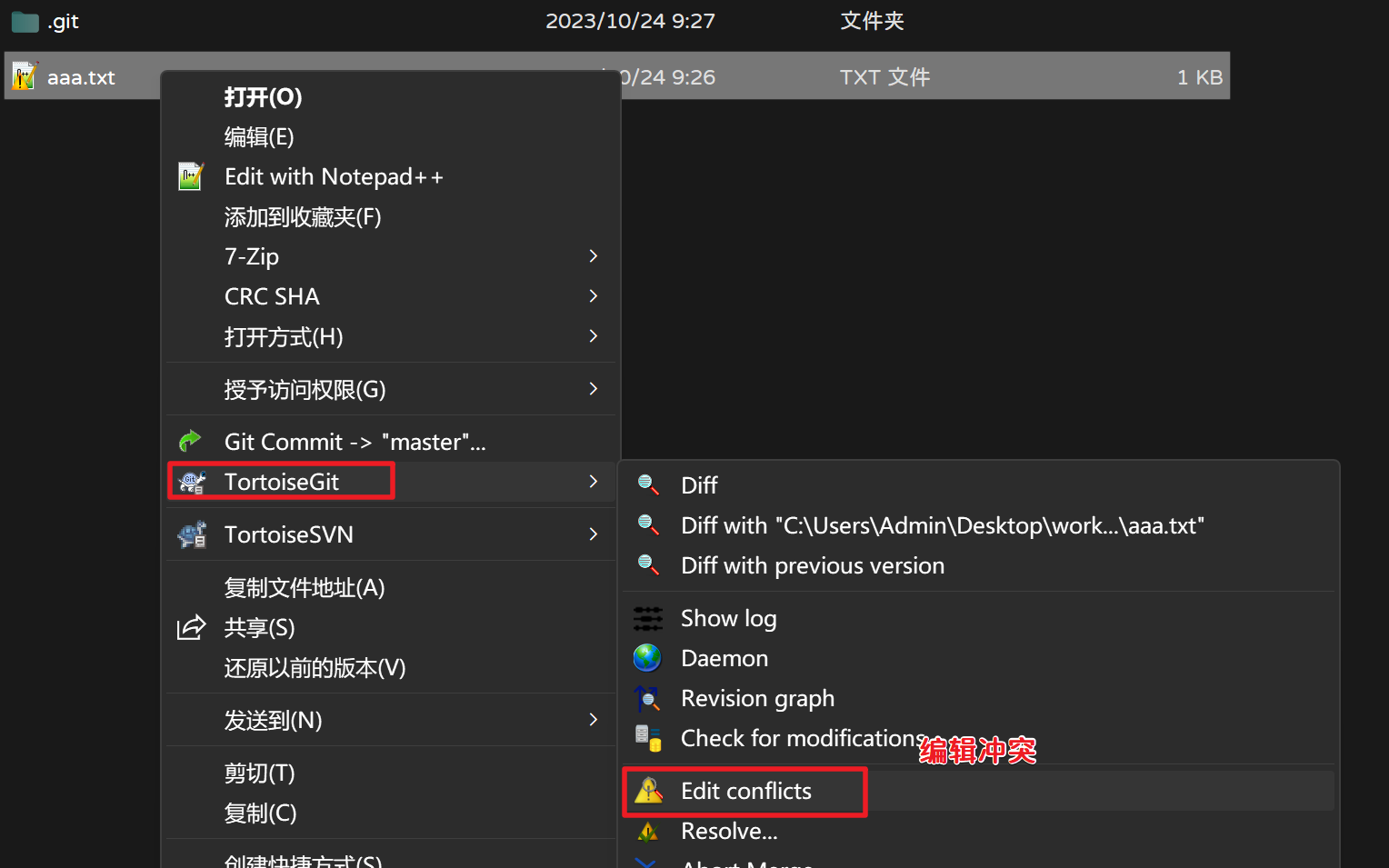 提交,推送,出现如下冲突: