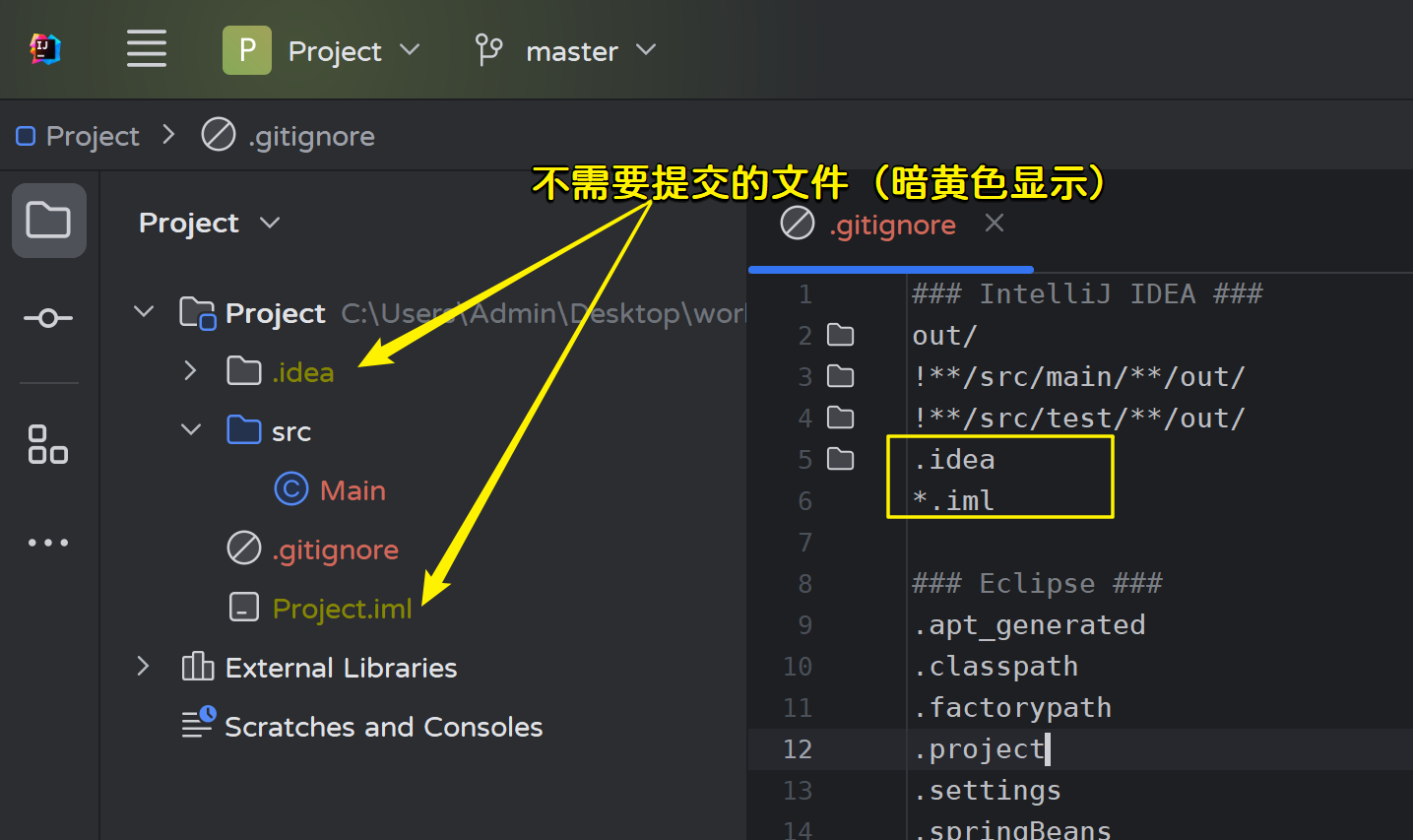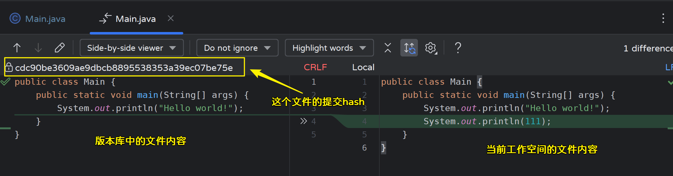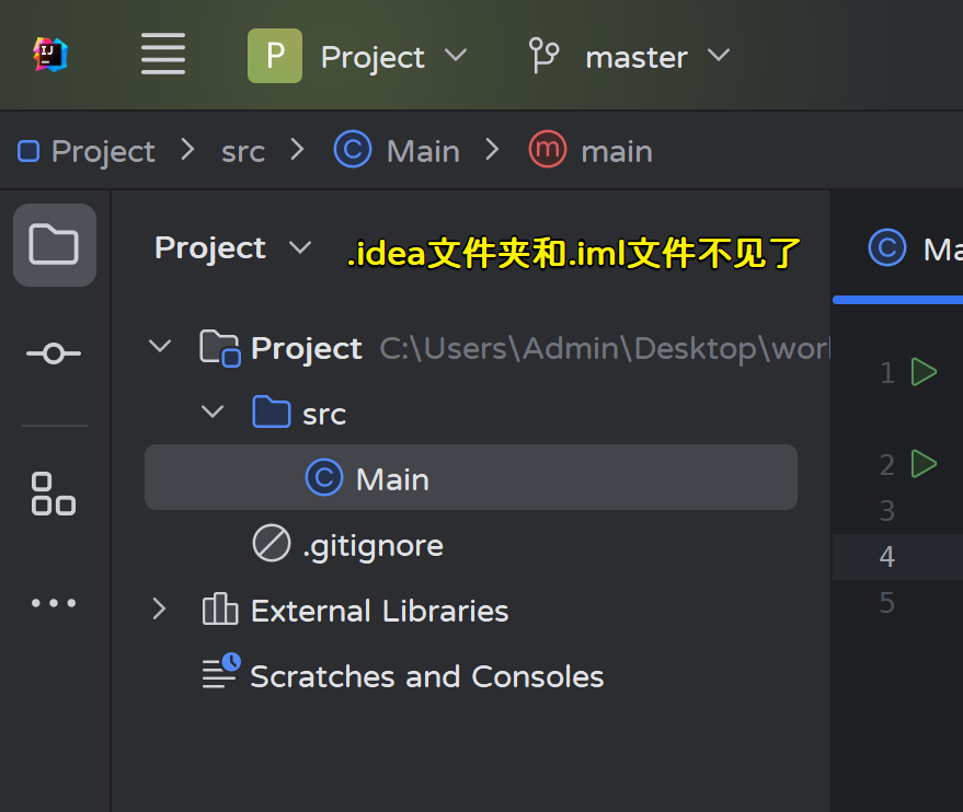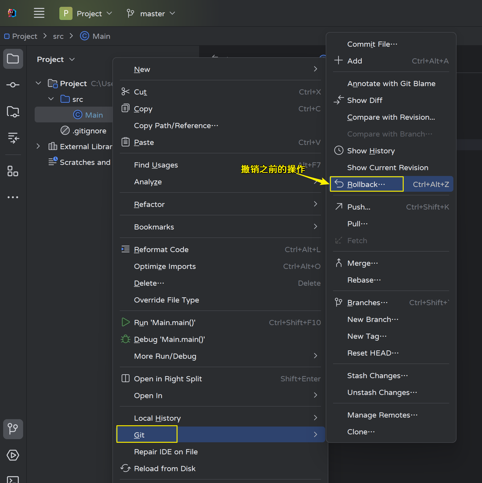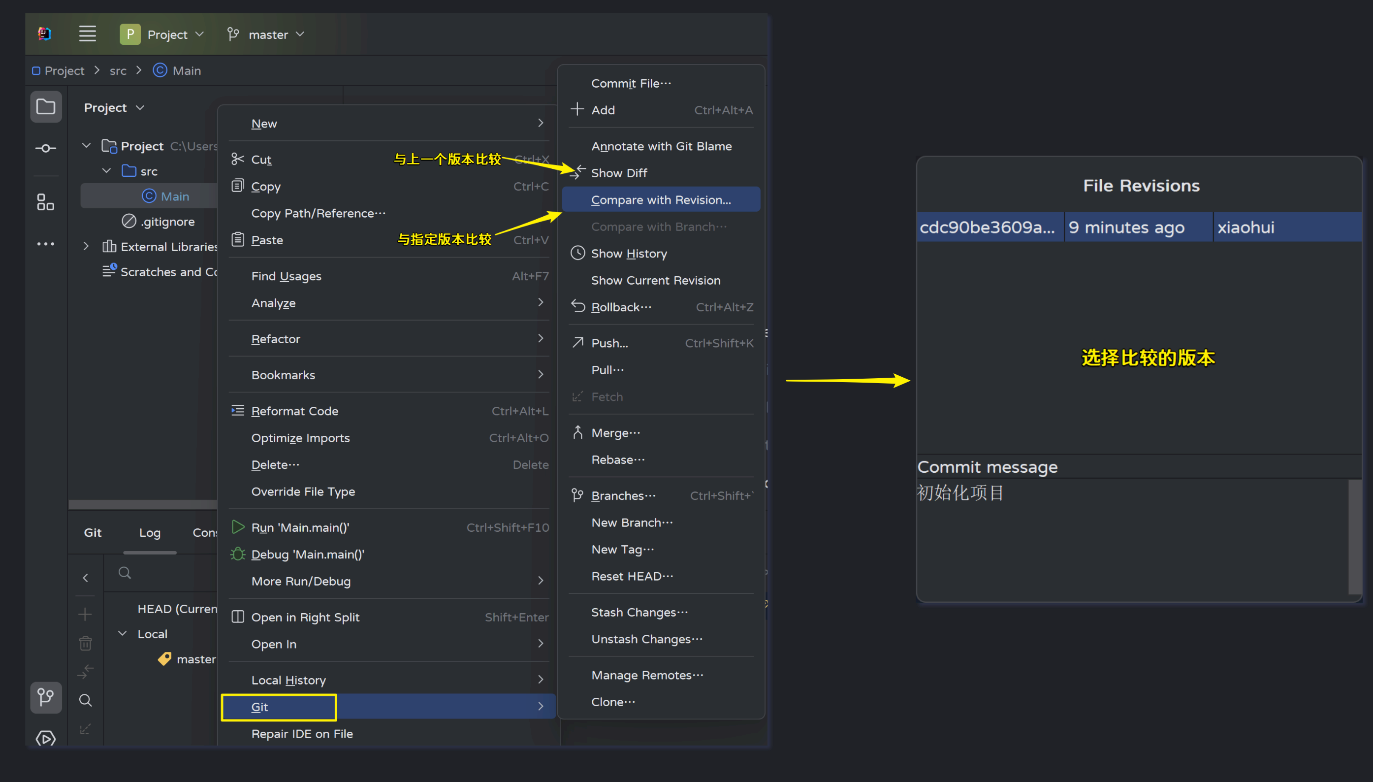 - 修改master分支的Main.java文件,然后提交: