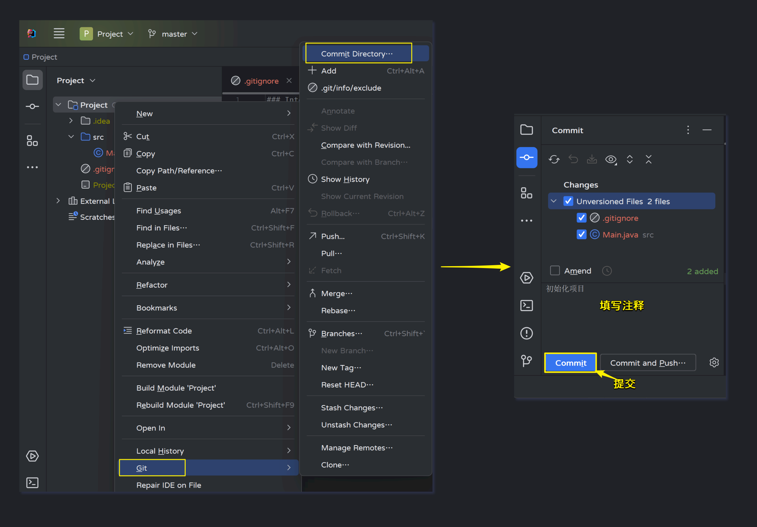 然后执行add、commit、push;