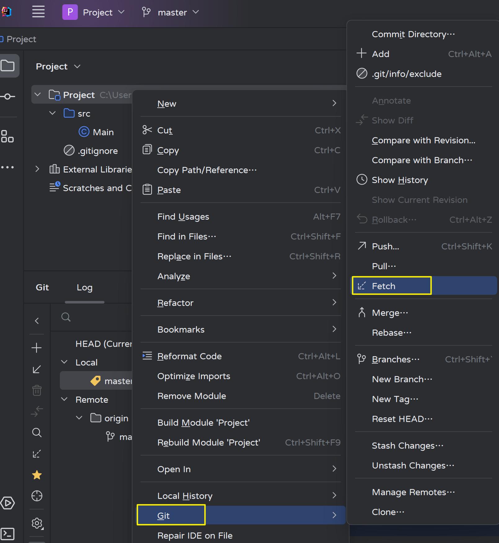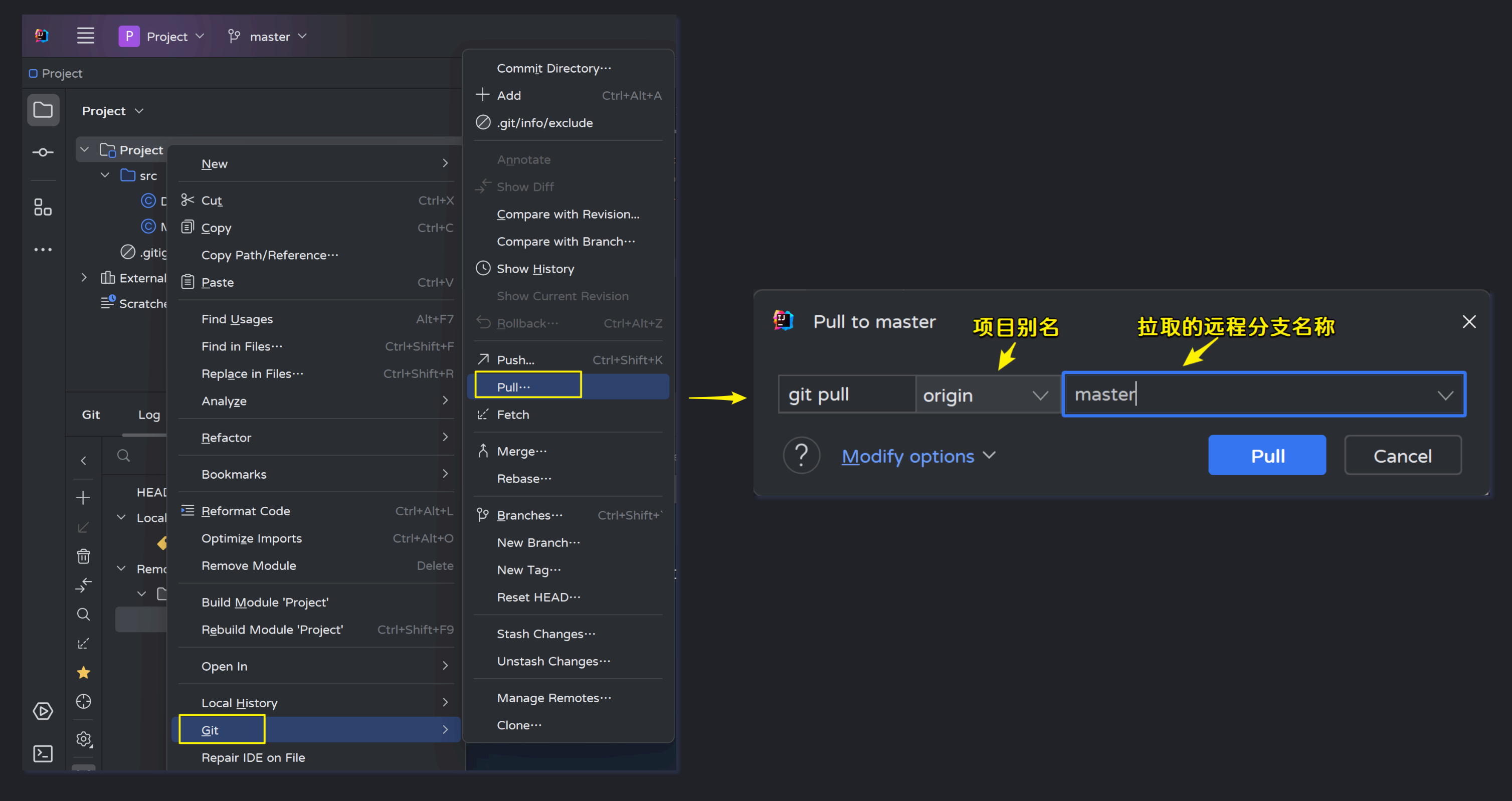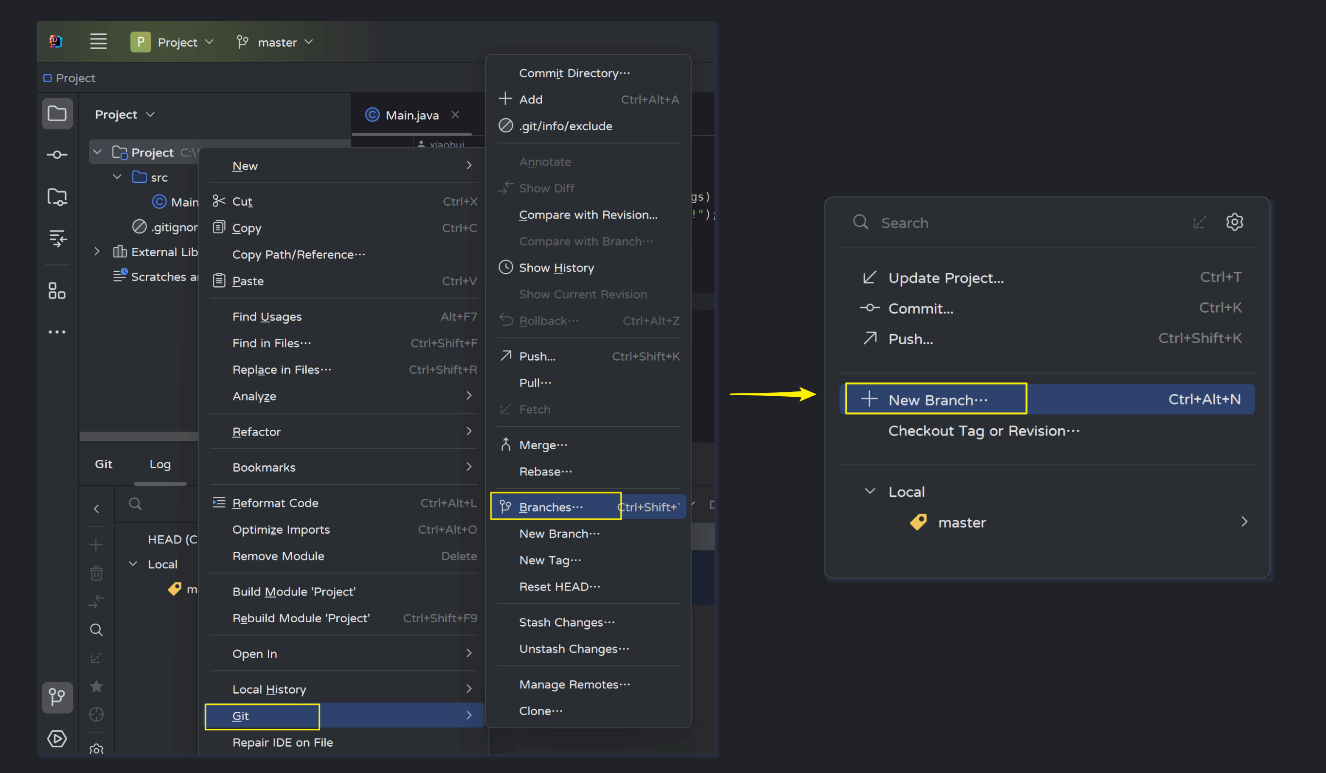 在项目上右击--->Git--->Branches...