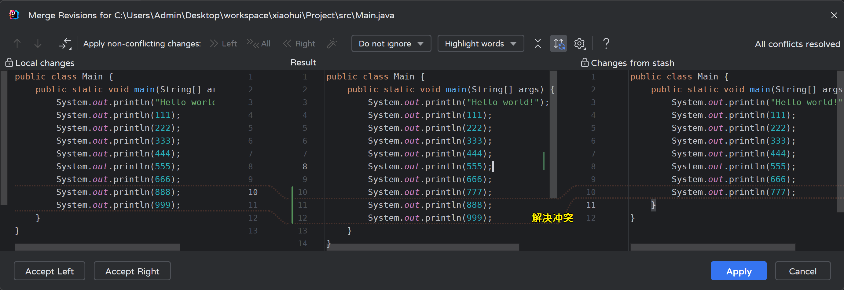 2) pull冲突