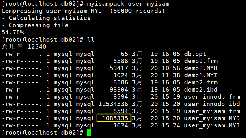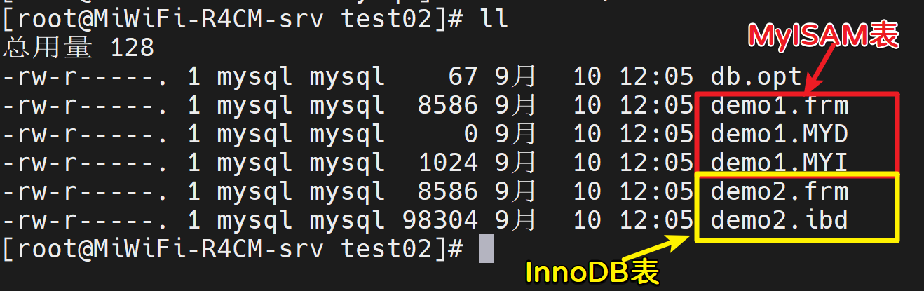mysql> alter table demo2 engine=myisam;