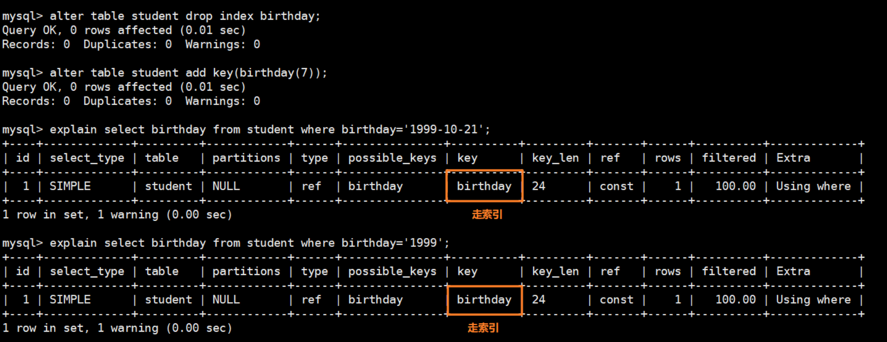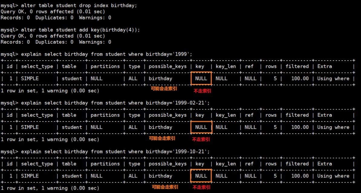 - 注意最左前缀法则