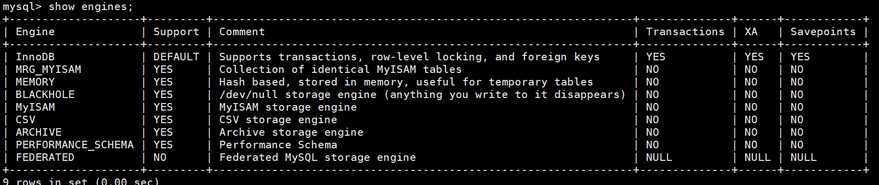 show engines;
