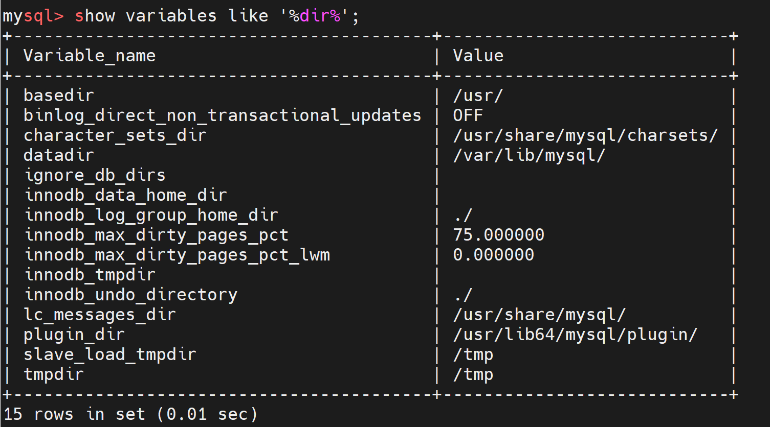 show variables like '%dir%';