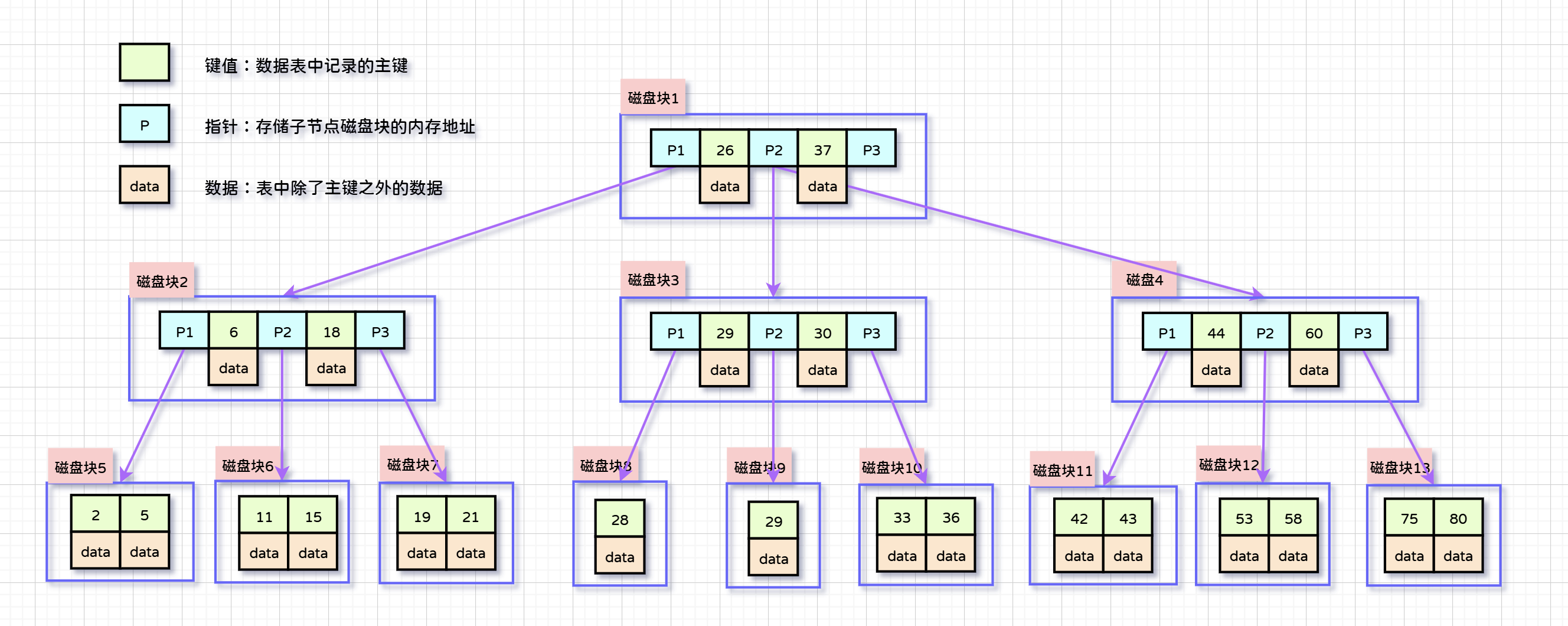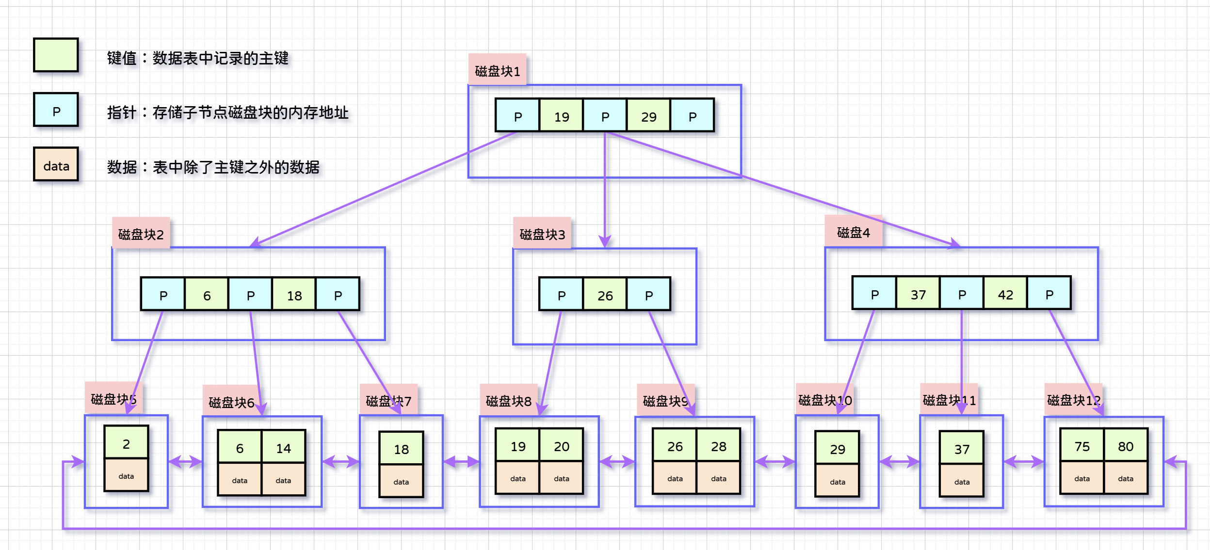 关于二级索引的定义:二级索引树的叶子节点存储的是本列索引值和主键值;而不是整行数据。在使用二级索引检索整行数据时,需要借助一级索引;也就是说,在找到索引后,得到对应的主键,再回到一级索引中找主键对应的数据记录。