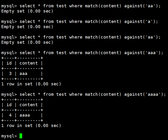 FULLTEXT INDEX `title`(`title`) with parser ngram -- 使用ngram中文分词器