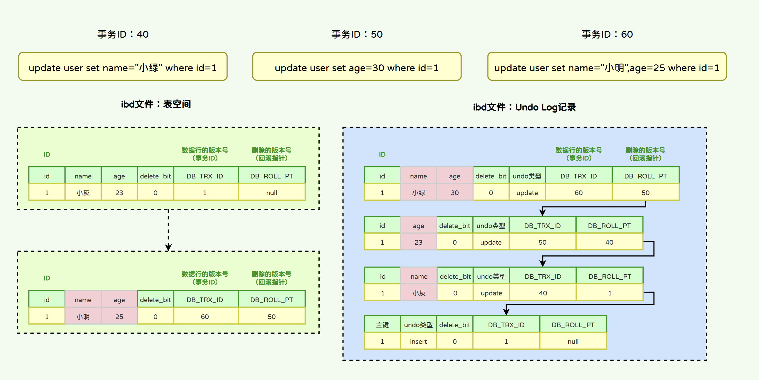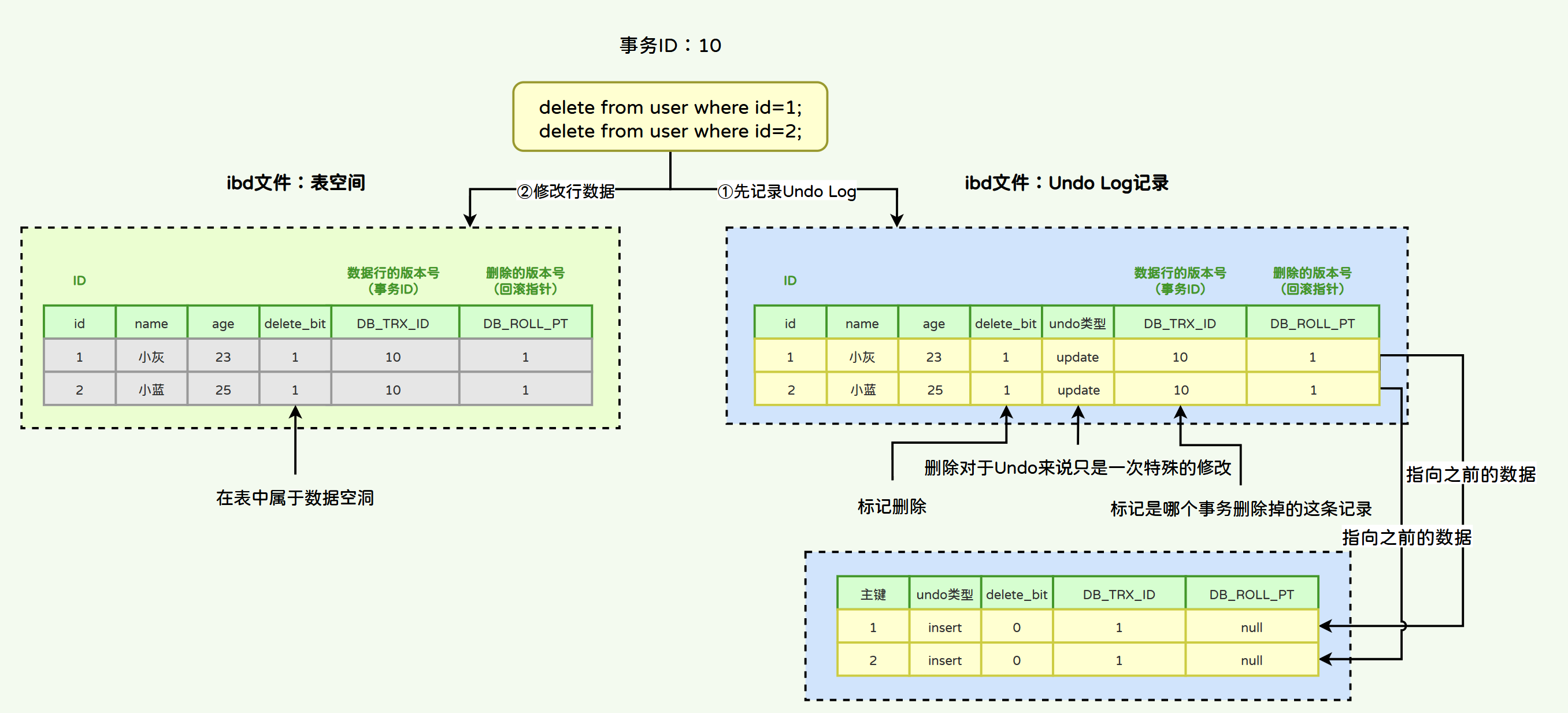-- 回滚事务,事务id销毁