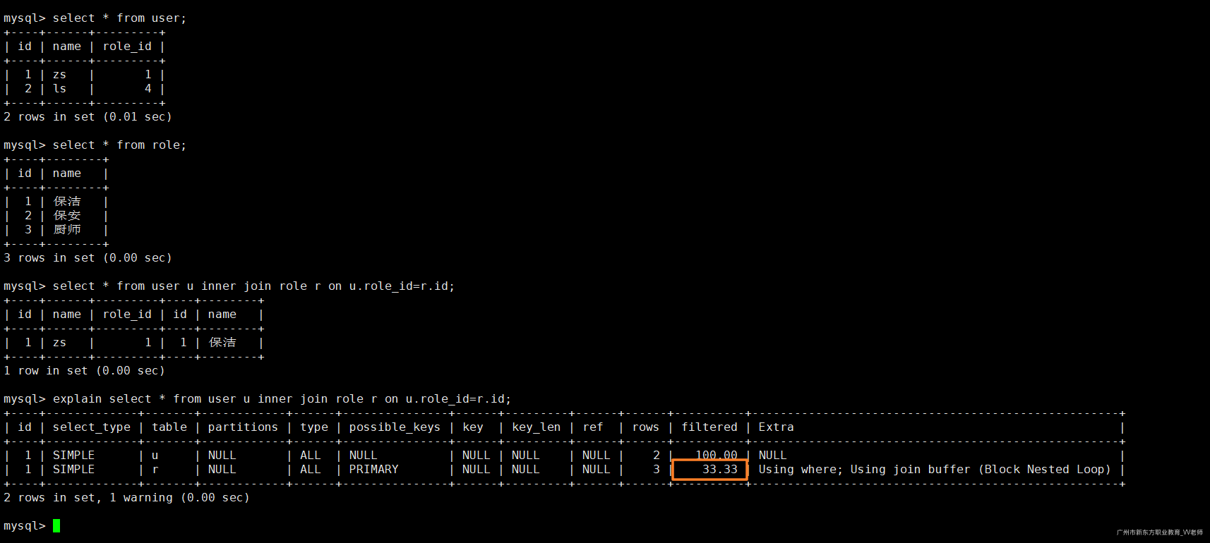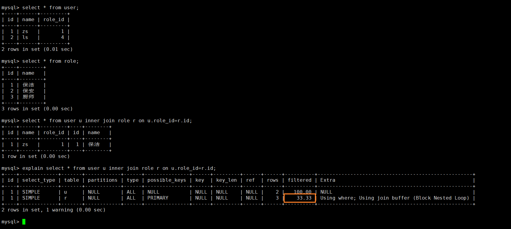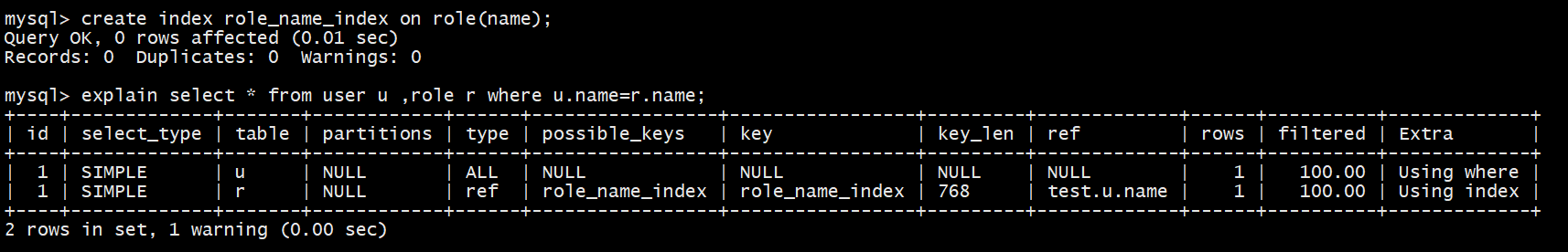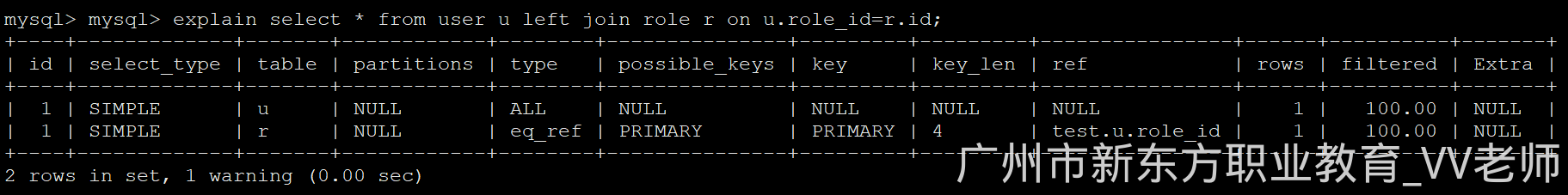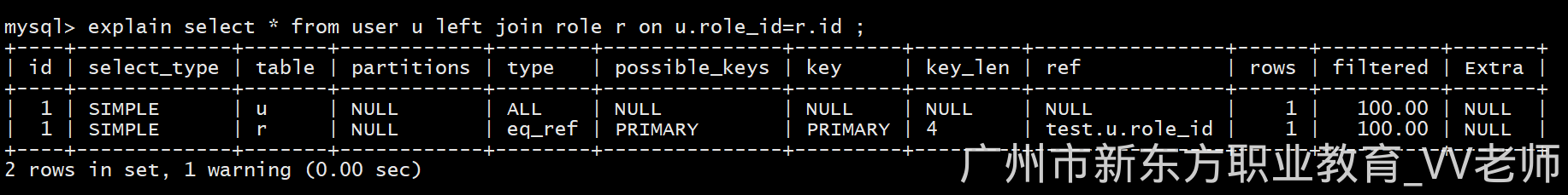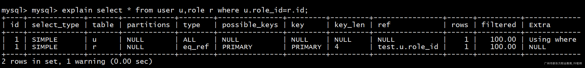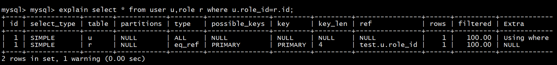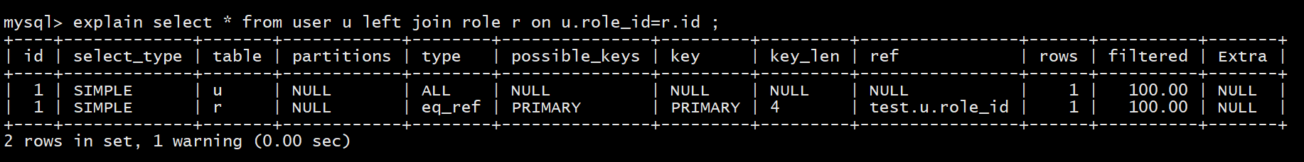 explain select * from user u left join role r on u.role_id=r.id;