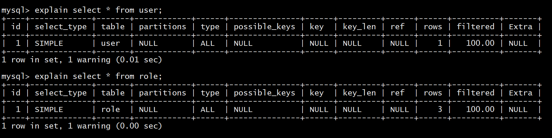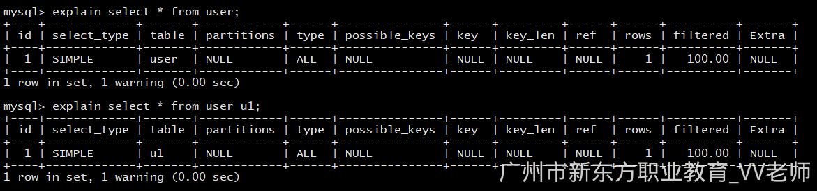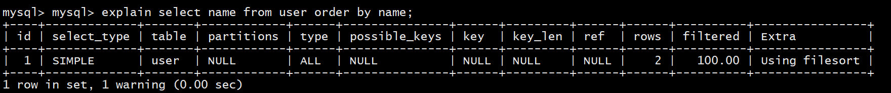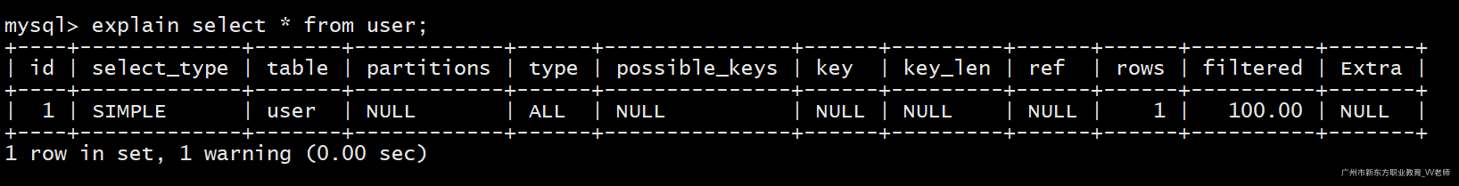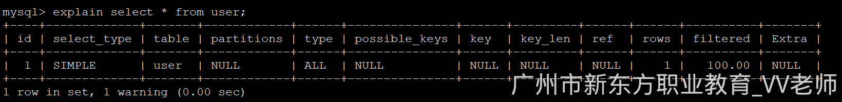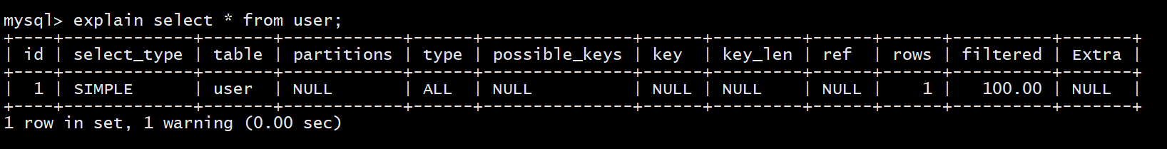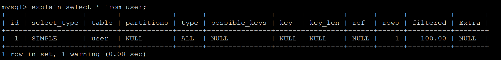explain select * from user;