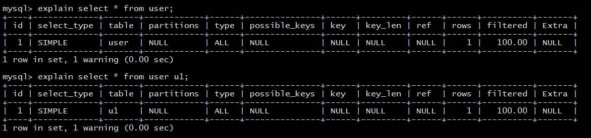 explain select * from user u1;