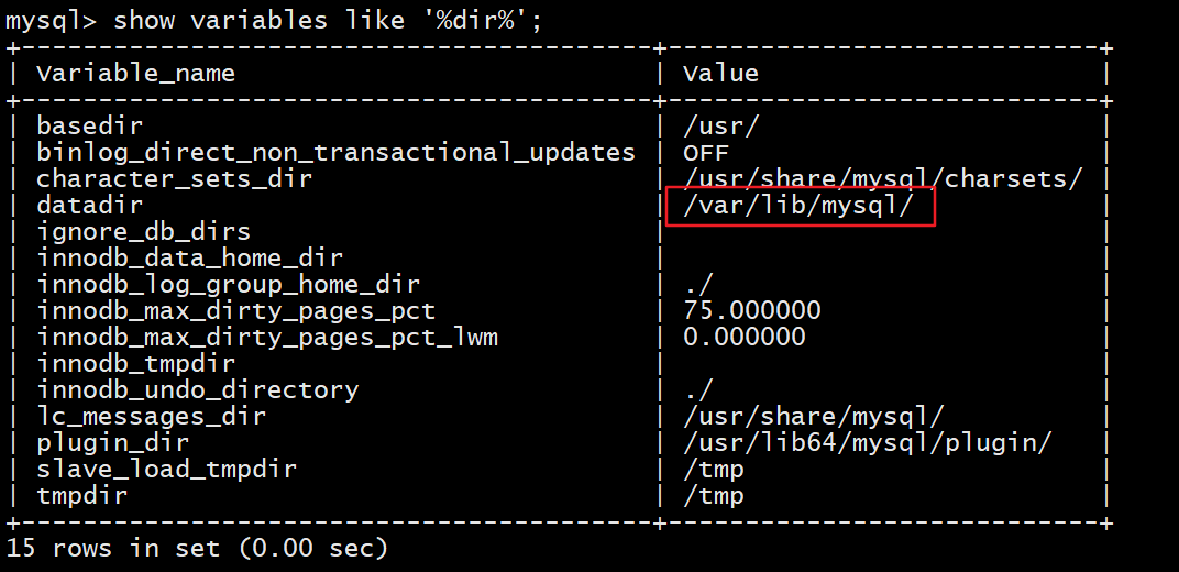 show variables like '%dir%';