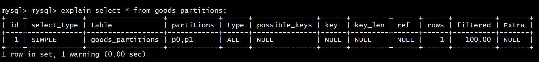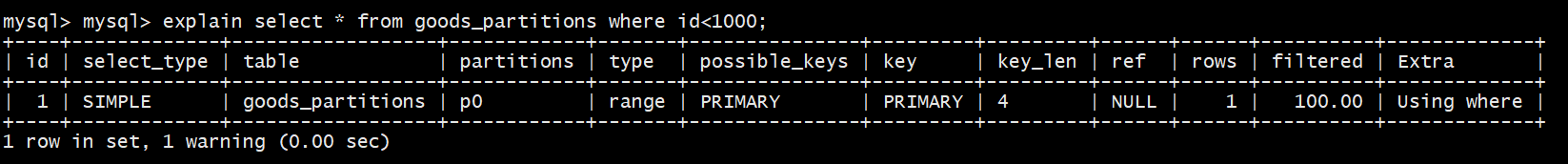 explain select * from goods_partitions where id<1000;