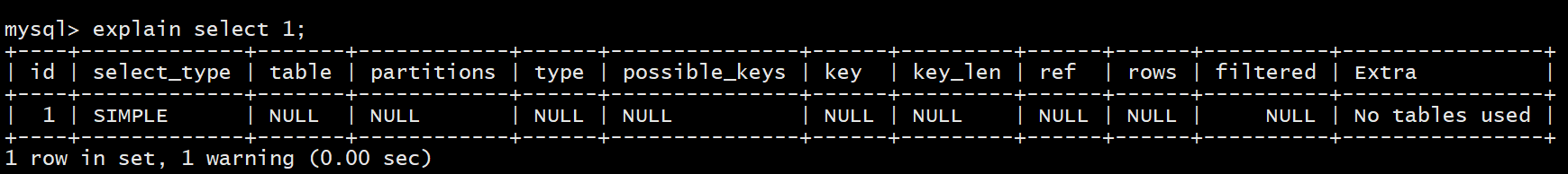 explain select 1;