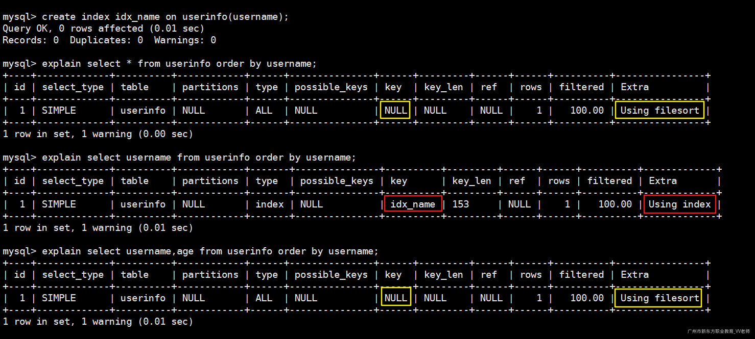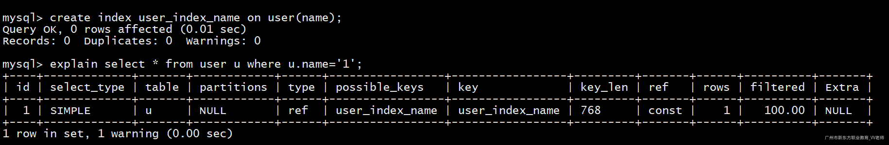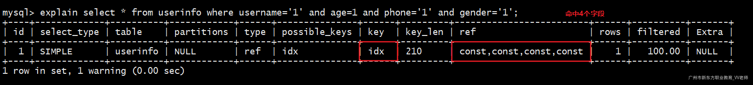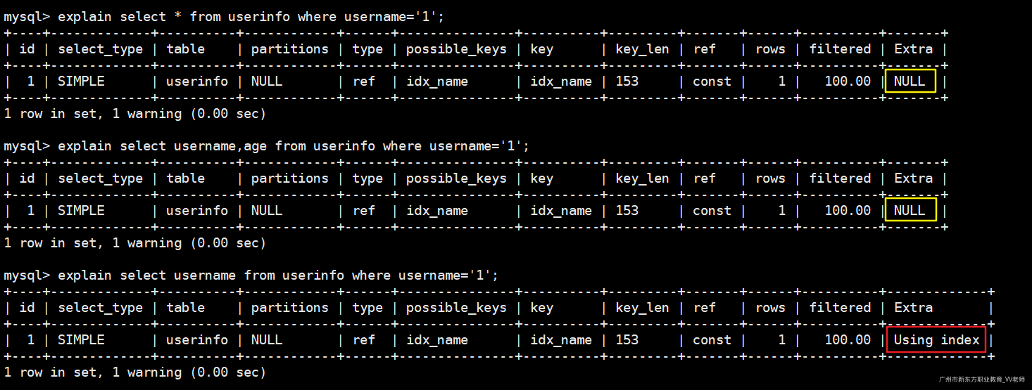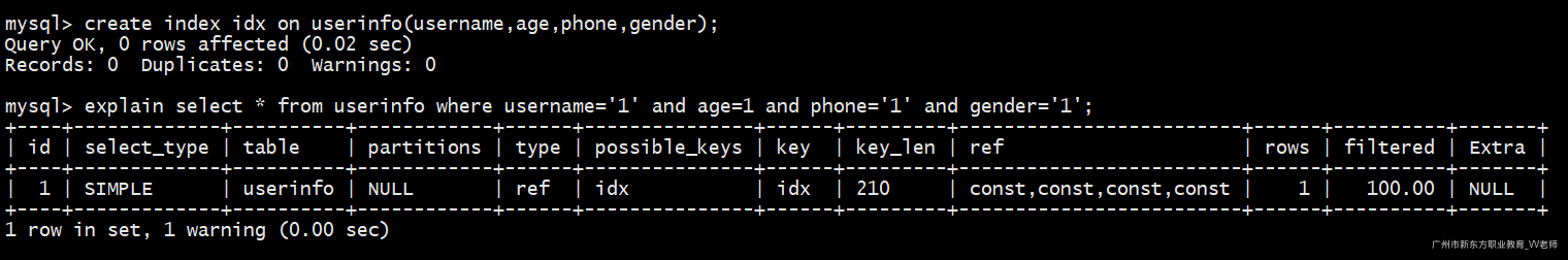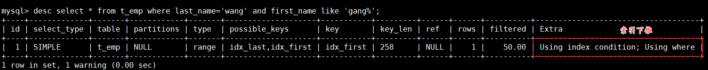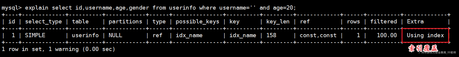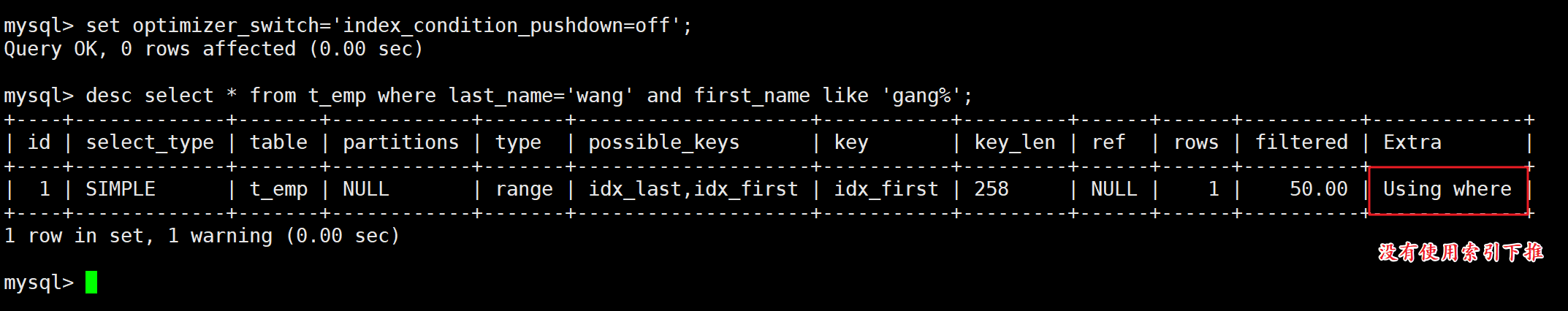 -- 使用先创建的那个索引(idx_name)