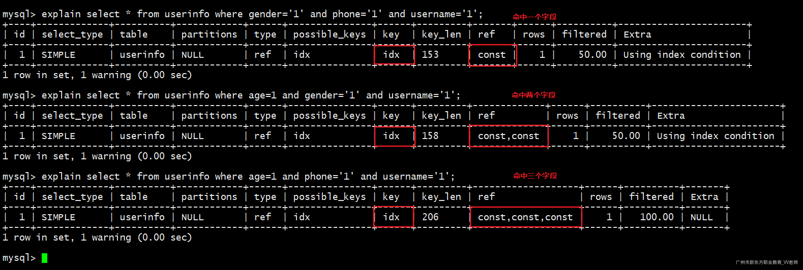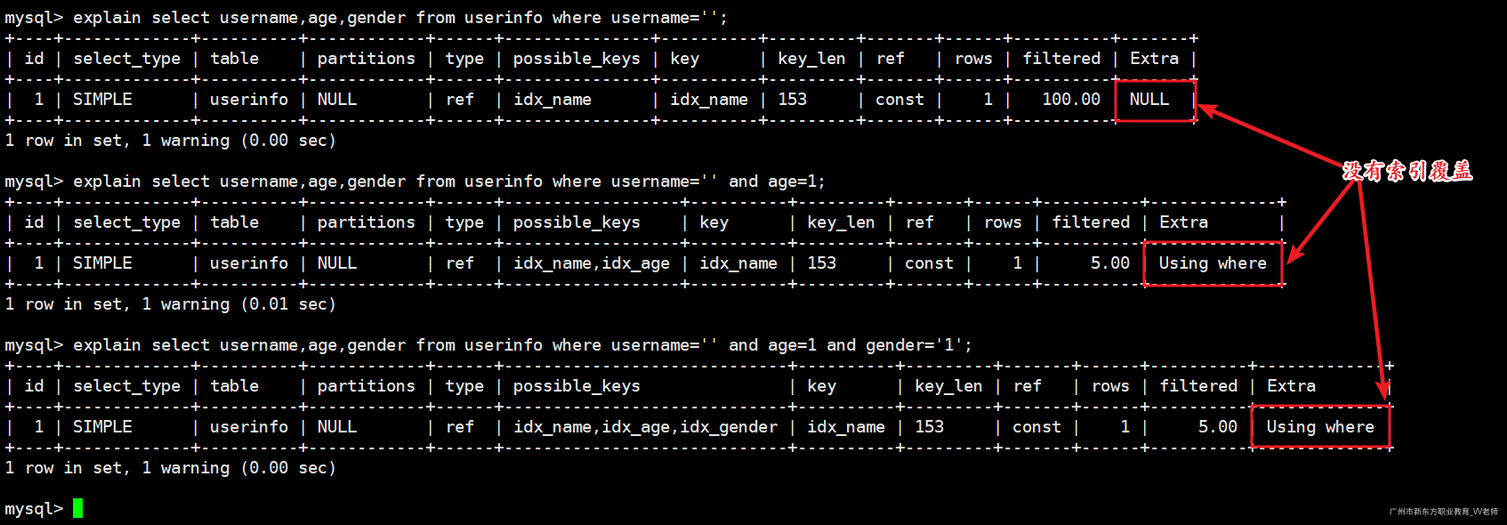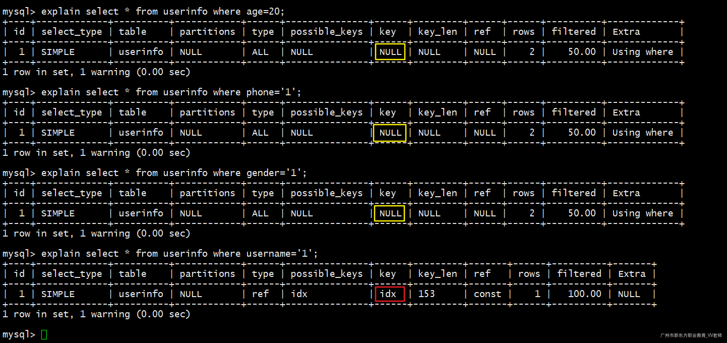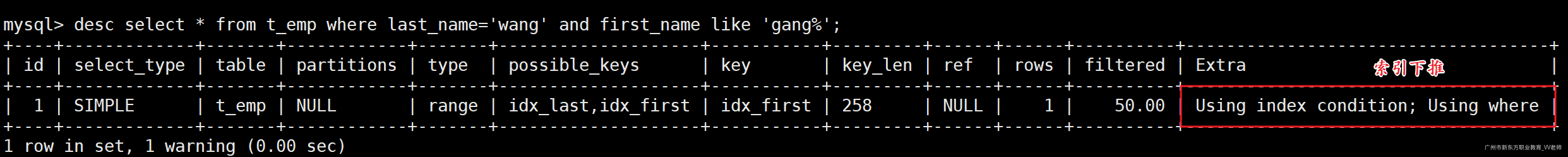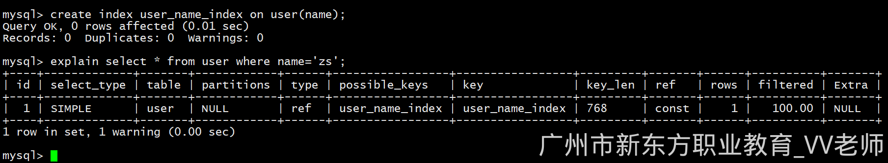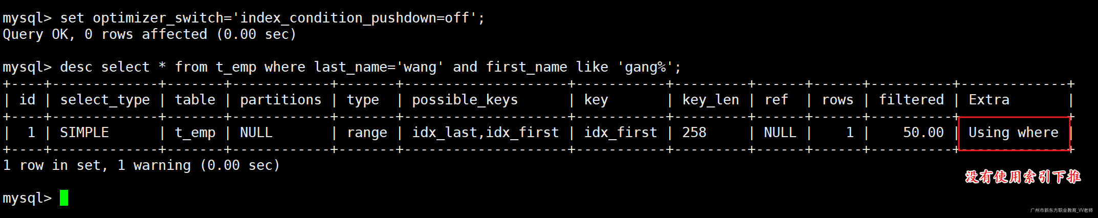 -- 使用先创建的那个索引(idx_name)