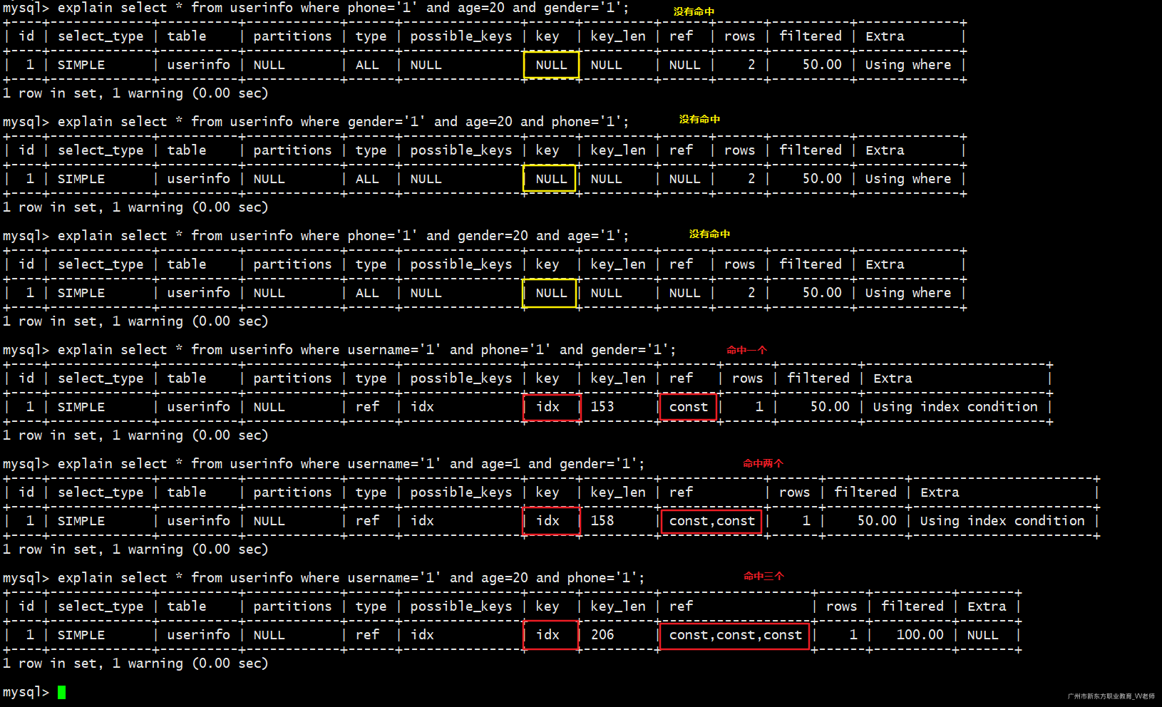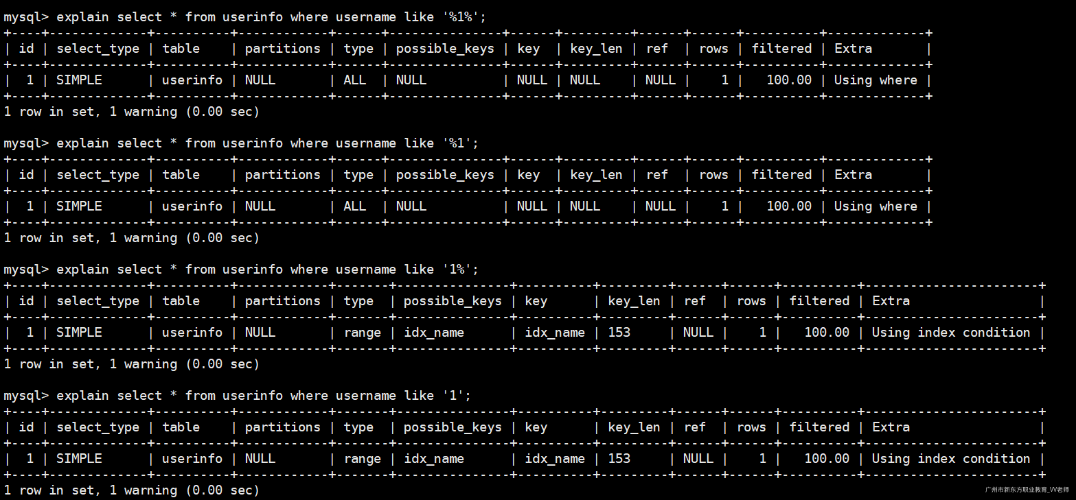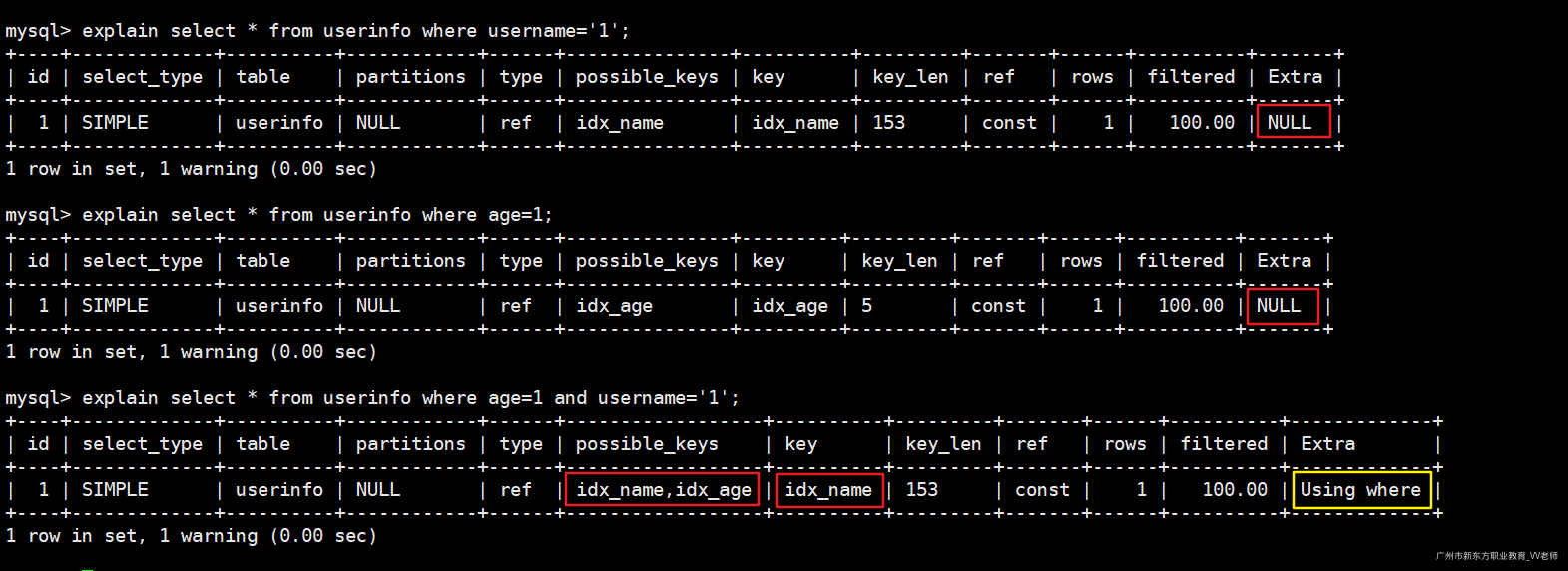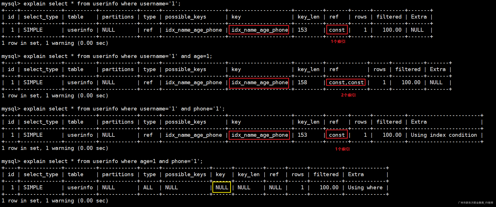 -- 使用先创建的那个索引(idx_name)
