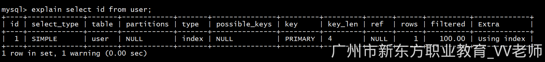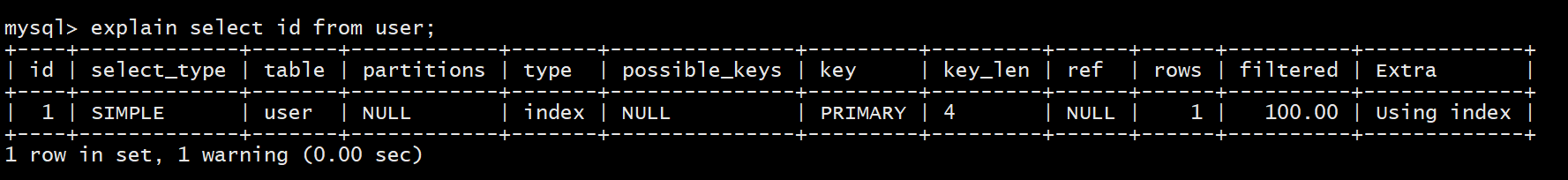 explain select id from user;