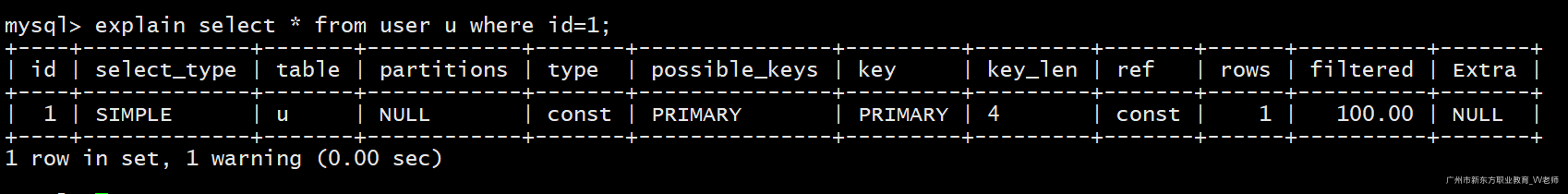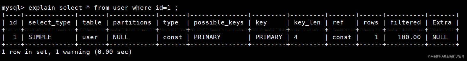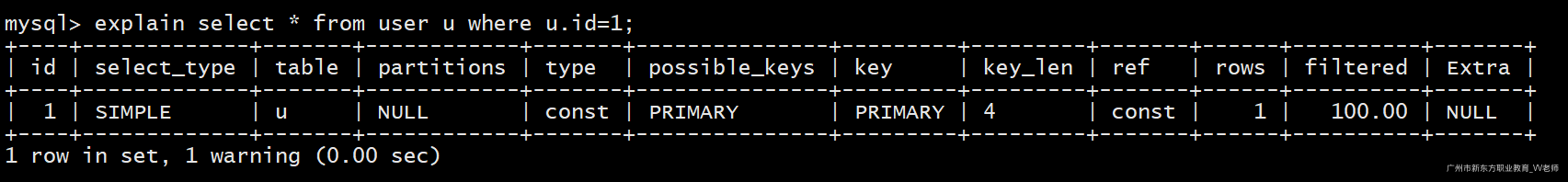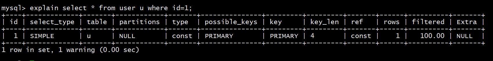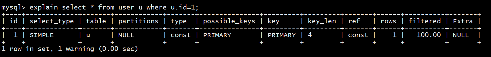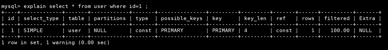 explain select * from user where id=1;