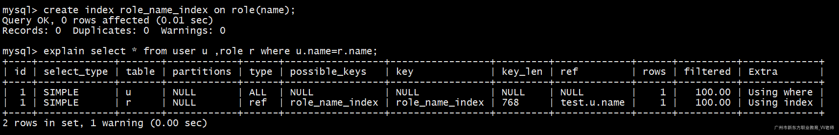 由于我们的表建立的是逻辑外键,不是真实的外键,因此role_id不是索引字段,如果是真实外键那么该列是索引字段