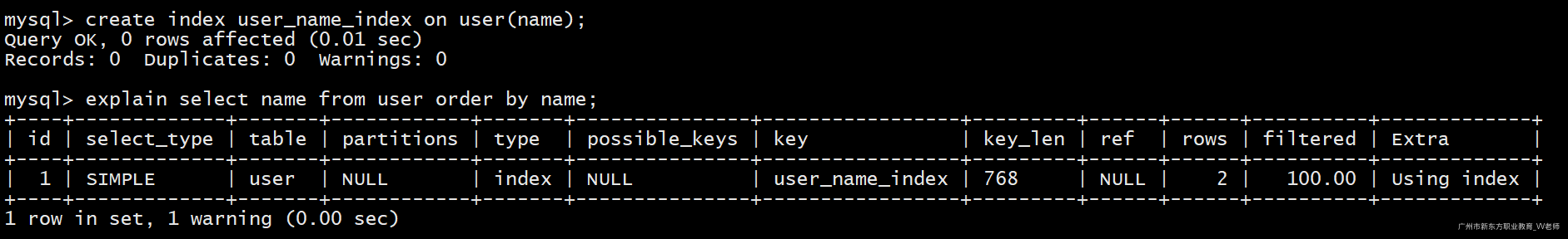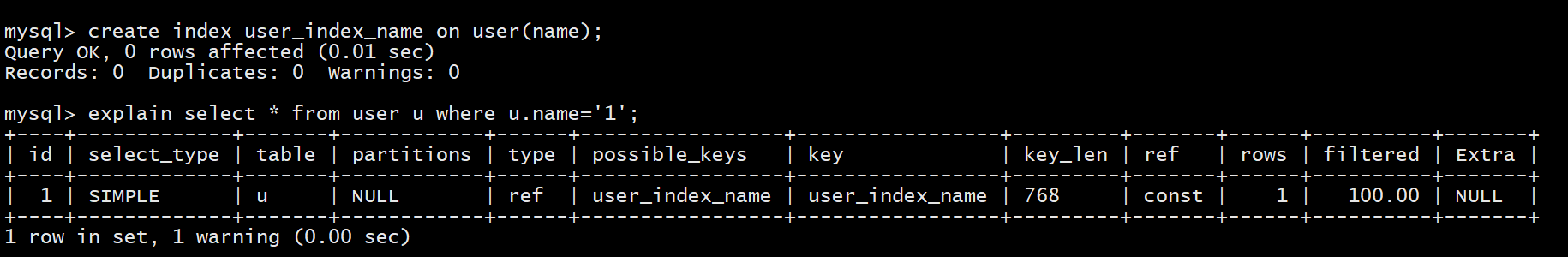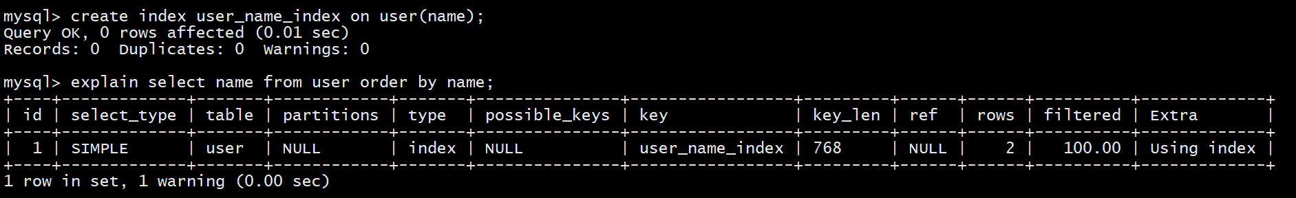 create index user_name_index on user(name);