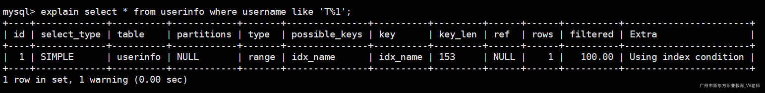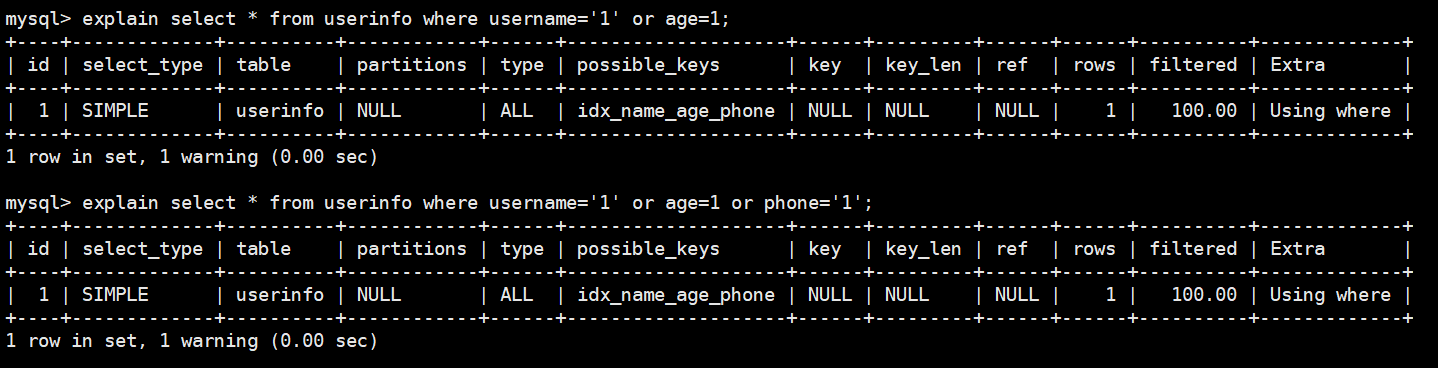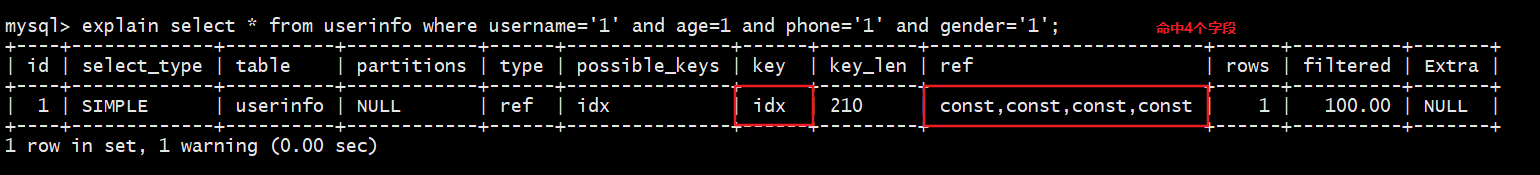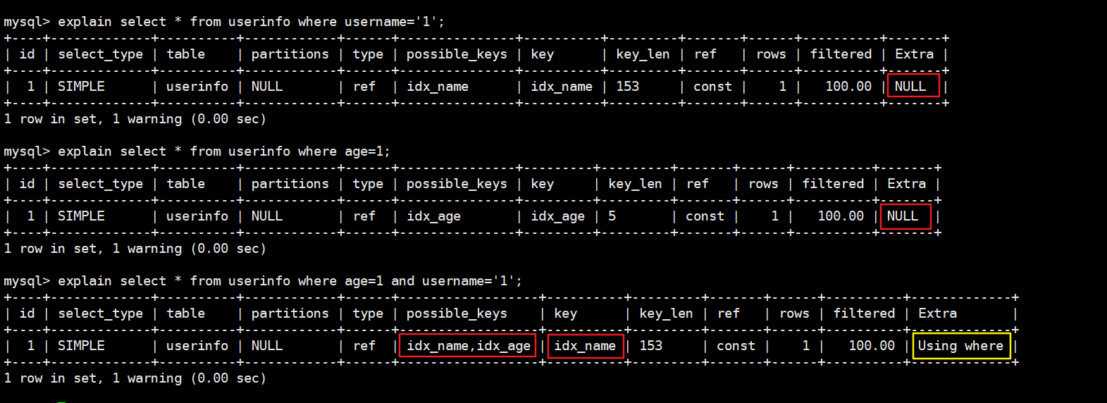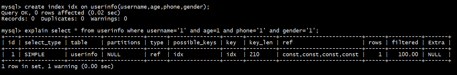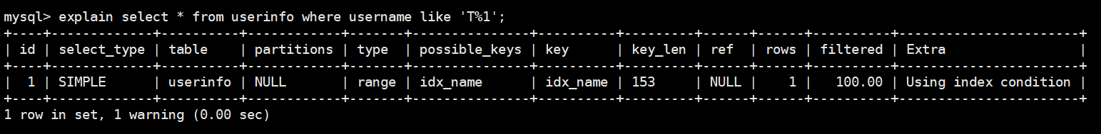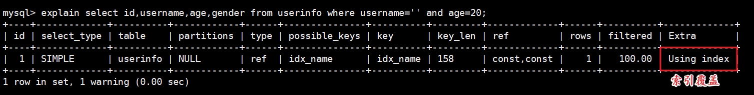 explain select * from userinfo use index(idx_name_age) where username='1';