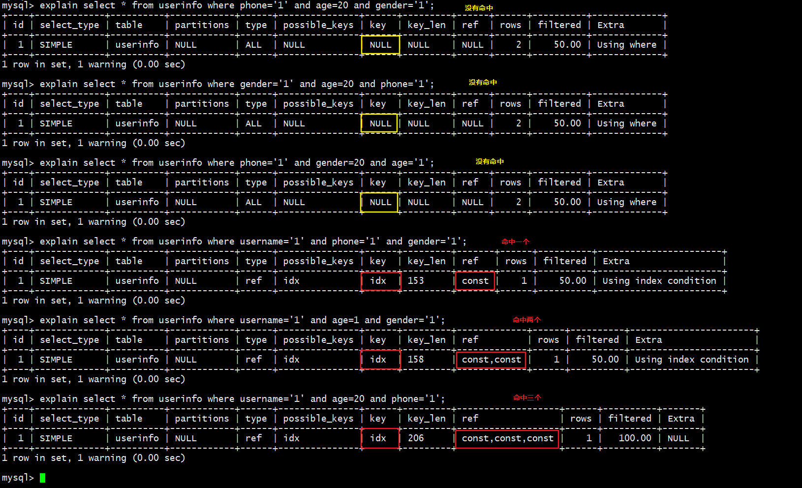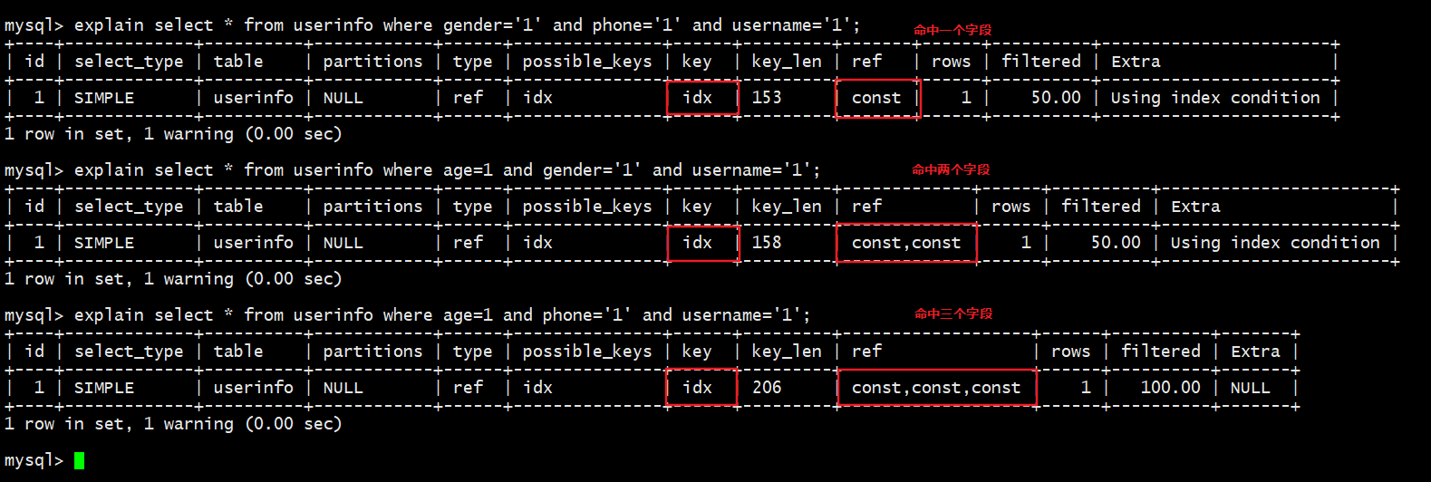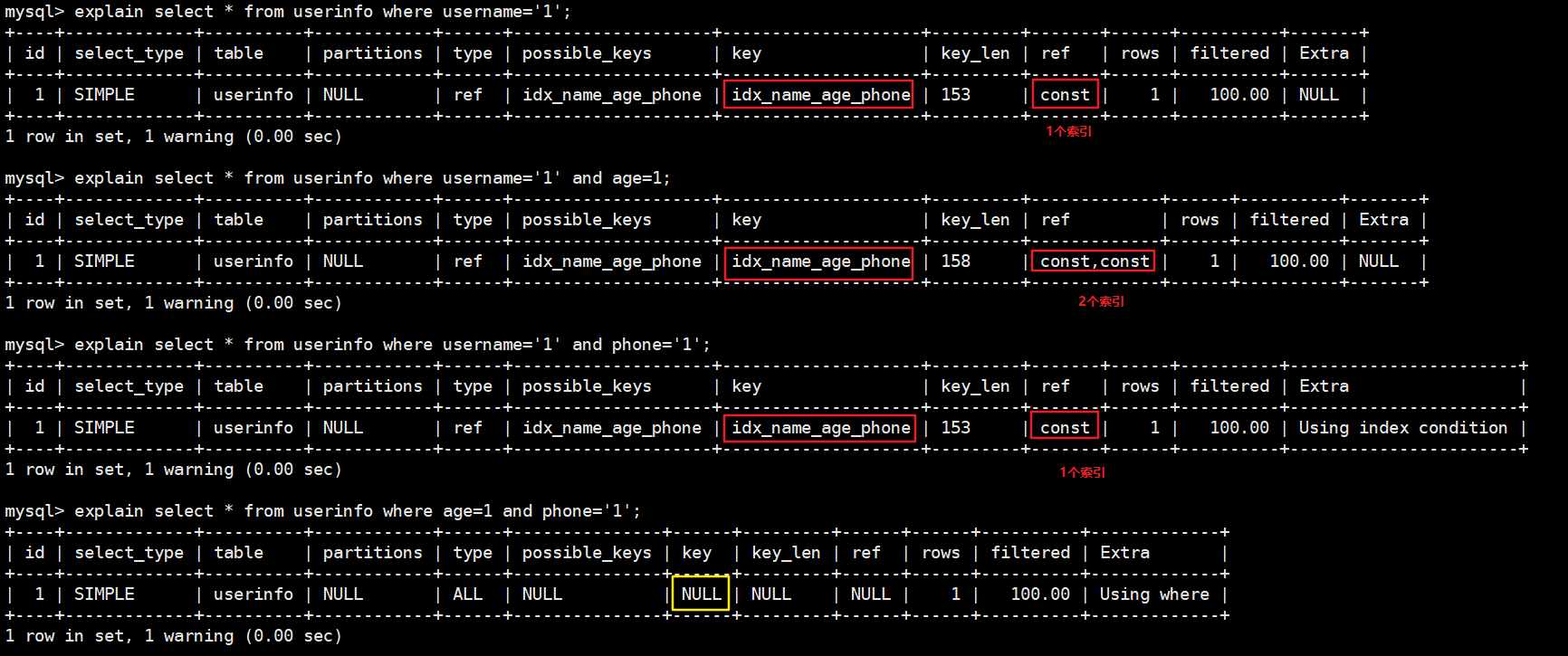 explain select * from userinfo use index(idx_name_age) where username='1';