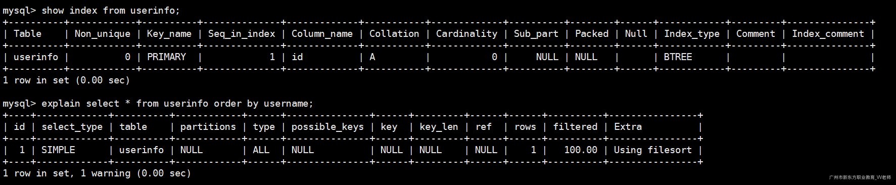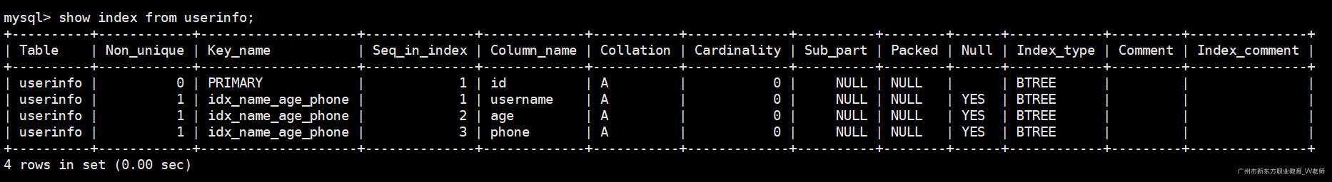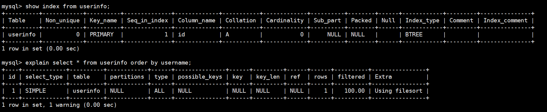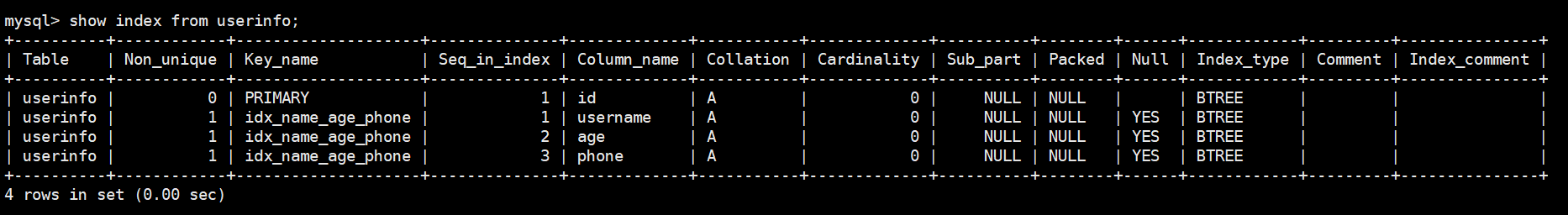 show index from userinfo; -- 查看索引