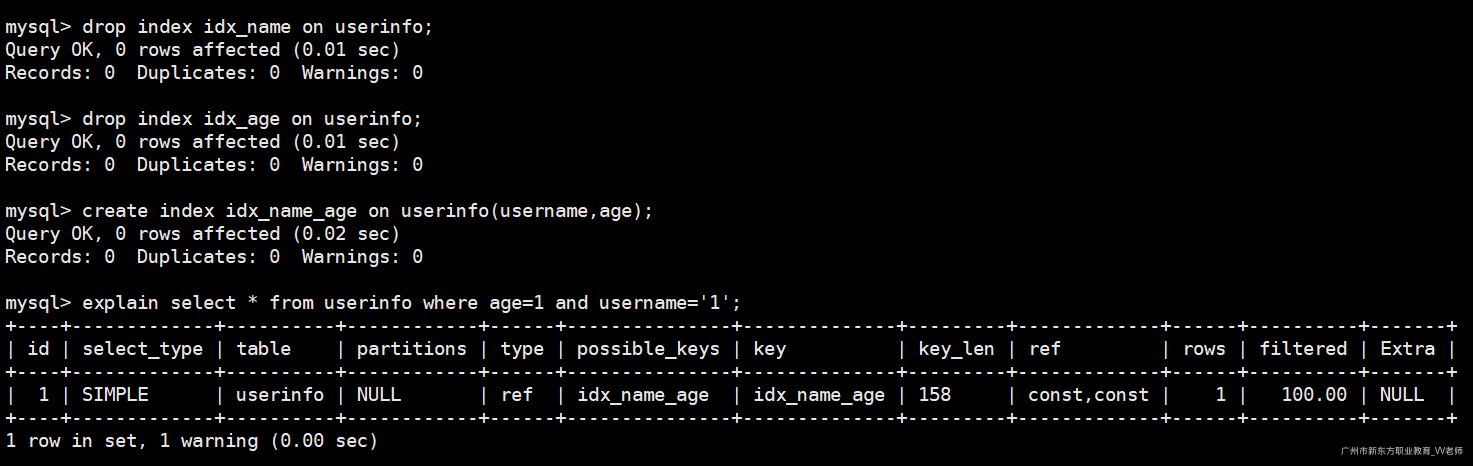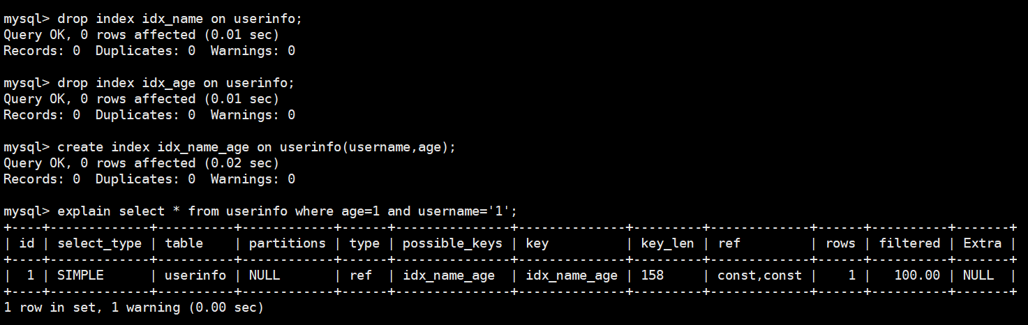 create index idx_name_age on userinfo(username,age); -- 给username、age创建复合索引