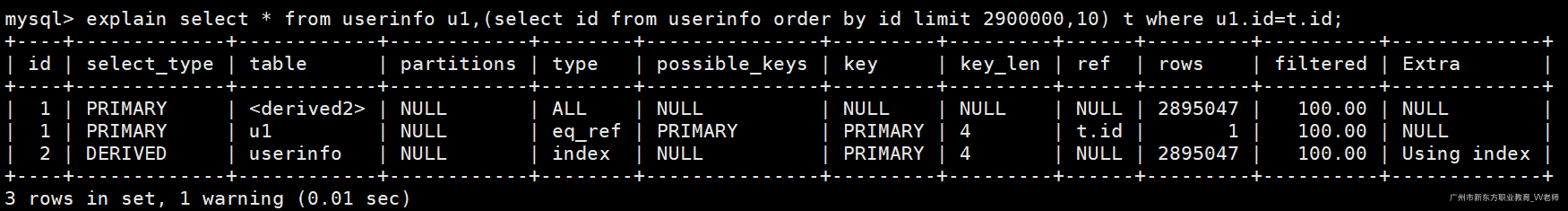 - PRIMARY:查询条件中包含有子查询时最外层的表(u1)