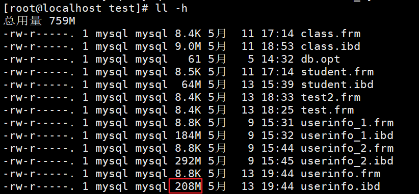 查看物理存储文件,发现多了不同的文件来存储