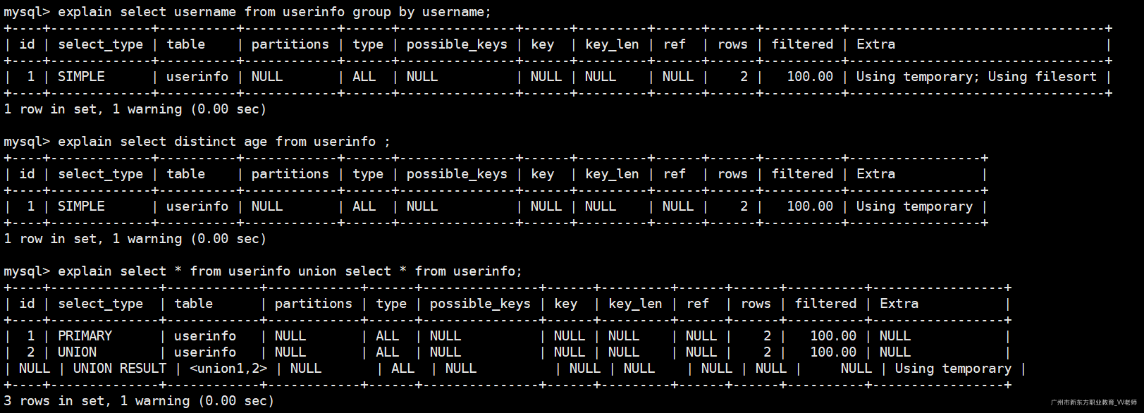 explain select sql_small_result username from userinfo group by username;