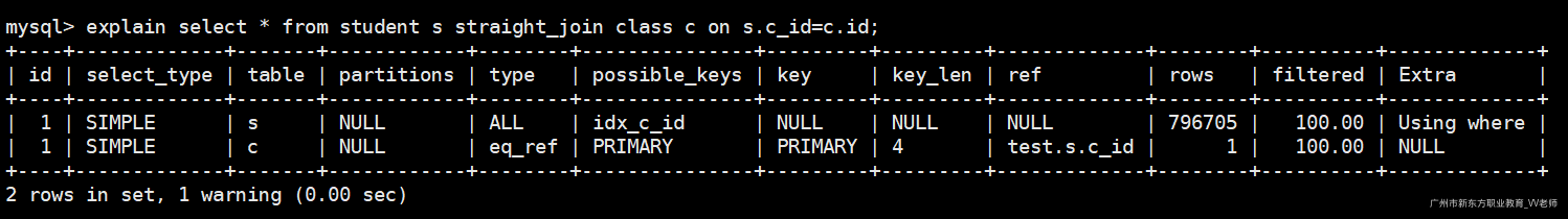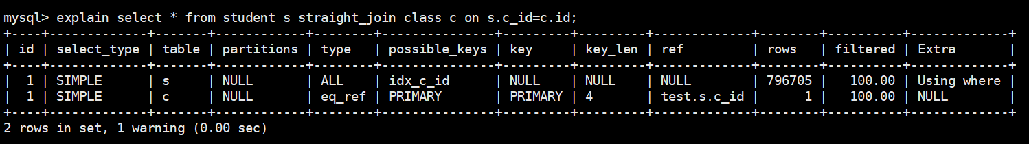 explain select * from student s straight_join class c on s.c_id=c.id;