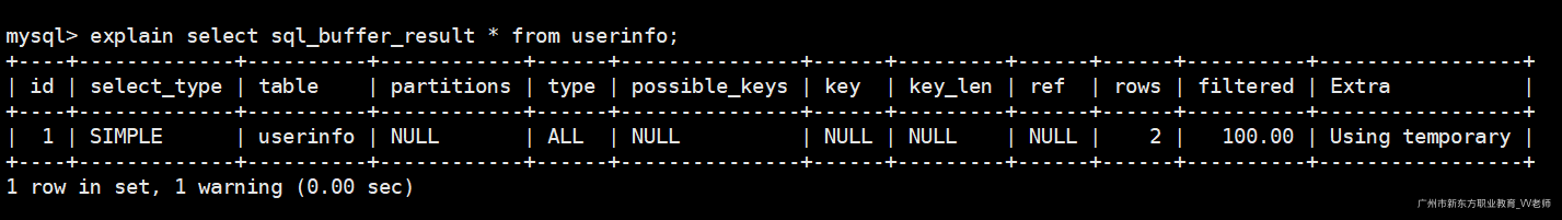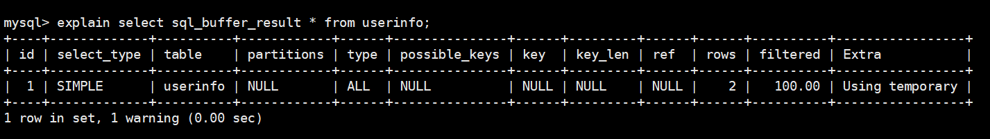 explain select sql_buffer_result * from userinfo;
