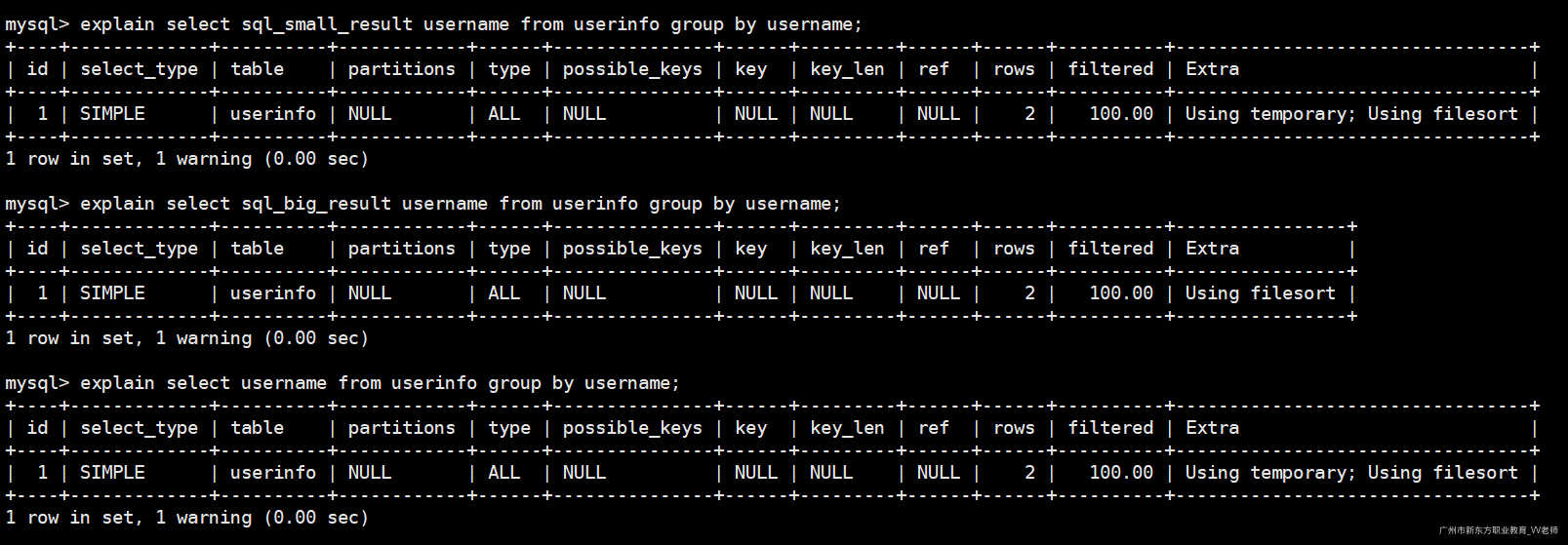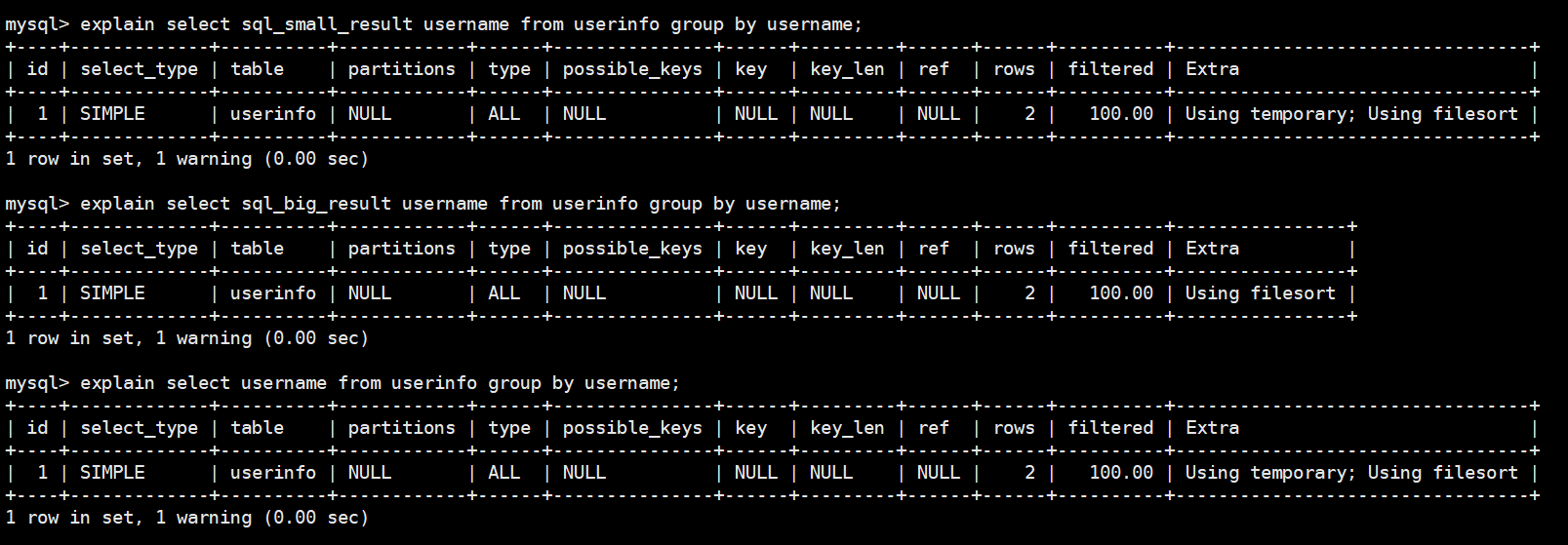 explain select sql_big_result username from userinfo group by username;