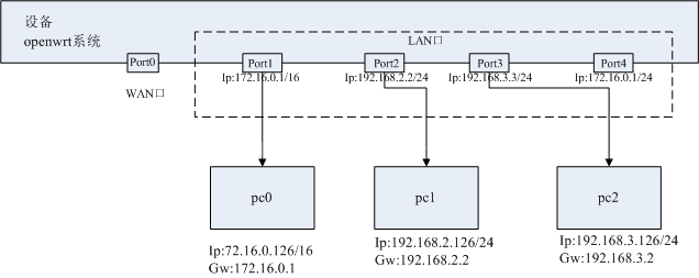 port1,port2,port3分别直连pc0,pc1,pc2,并配置好ip地址