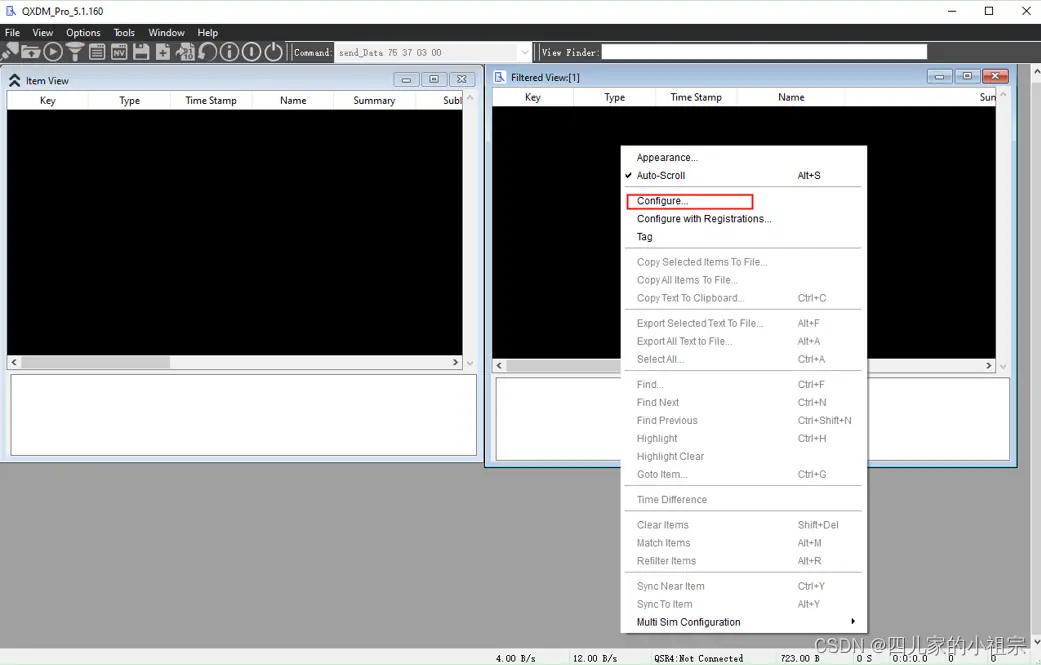 F12添加新的窗口,右键点击Configure选择需要过滤的配置。以过滤OTA log为例。保存 .cfg文件。