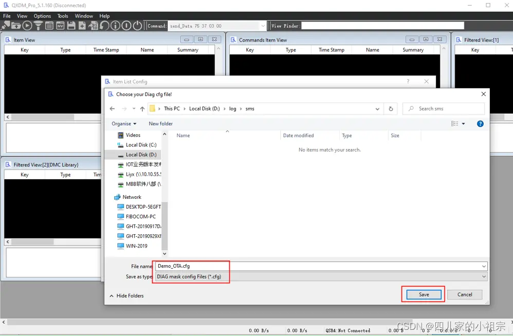 (8)抓取log结束,断开连接。然后File--->Save Items保存抓的log,log为isf格式。抓包生成isf文件默认在C:\Users\Public\Documents\Qualcomm\QXDM\ISF中,可以根据配置选择不同路径。