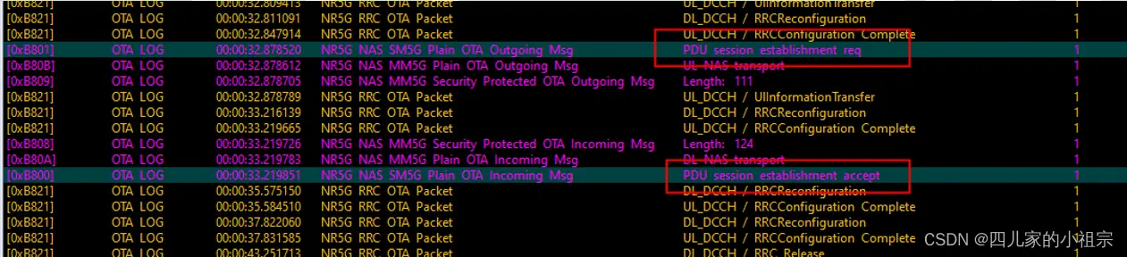 - 找到Ping包的数据包,在过滤器中输入0xB870,确认MAC是否已经把数据包发出去(物理层log是二进制码流,需要从MAC确认,下图以NR为例)