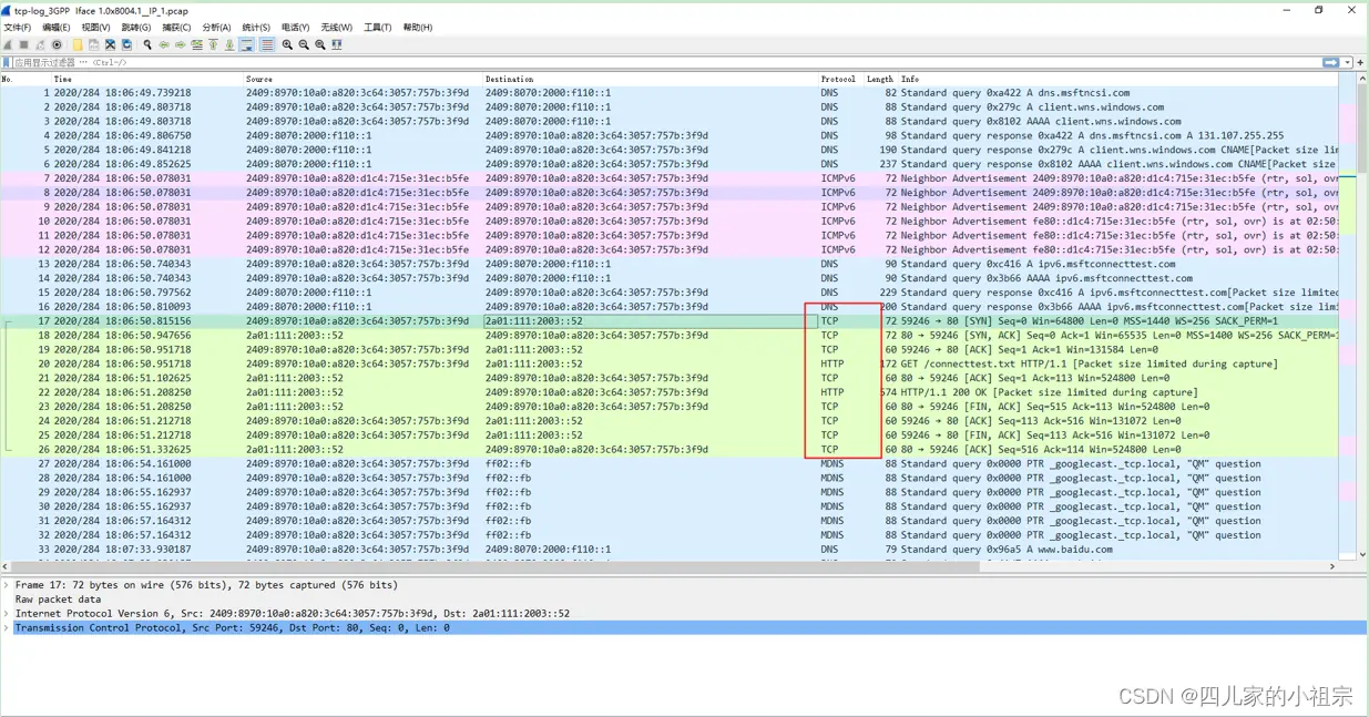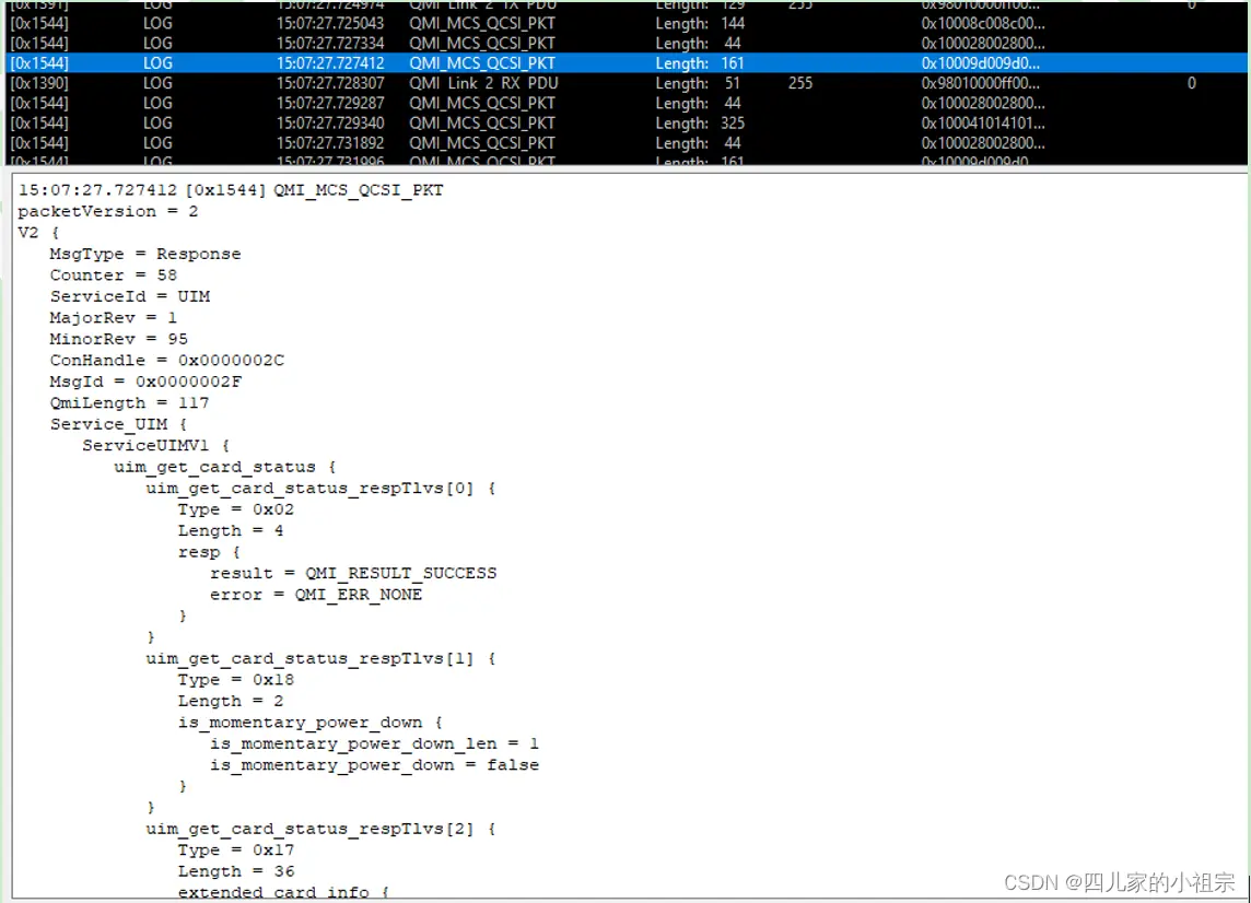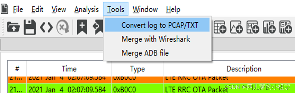 如果需要看具体TCP包信息,可以用QCAT打开转成.pcap文件,然后用Wireshark打开。