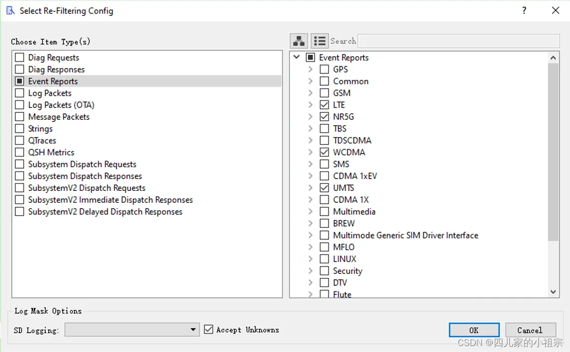 Event Reports勾选LTE、NR5G、WCDMA、UMTS。
