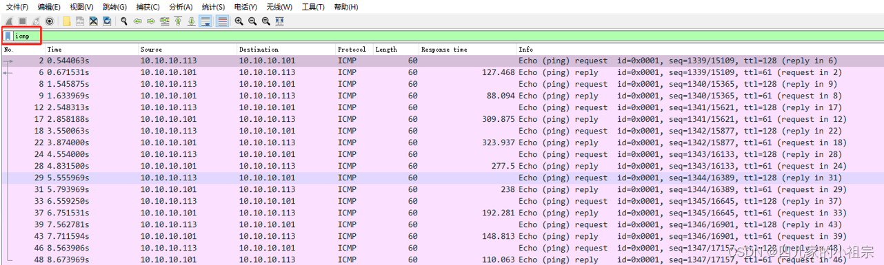 - 用QXDM打开PCAP log,过滤出Ping包内容(在过滤栏输入icmp进行筛选)