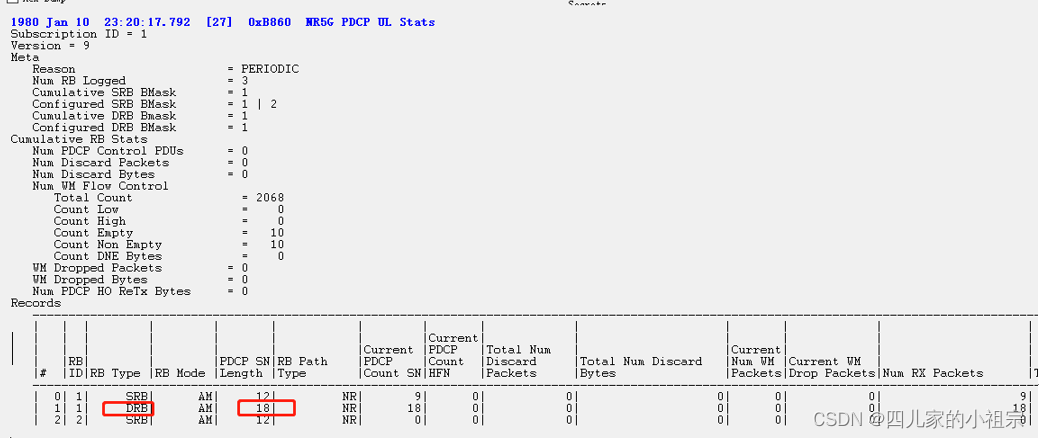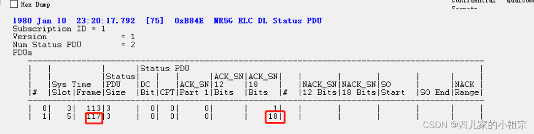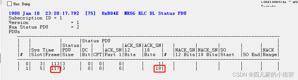 - UE在SFN <112>发送了ping request消息,RLC SN=18。(Ping Request由应用侧发给协议栈后,首先进入PDCP,从NR5G PDCP UL States中能看到,Ping R equest属于数据业务,占用DRB资源,起对应的SN为18,进而通过查看NR5G L2 UL Data Pdu找出18所对应的SFN为112)