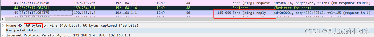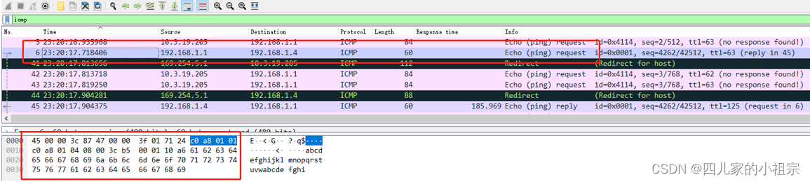 - 找到此数据包Ping Request和Reply对应的Data内容,如下图所示