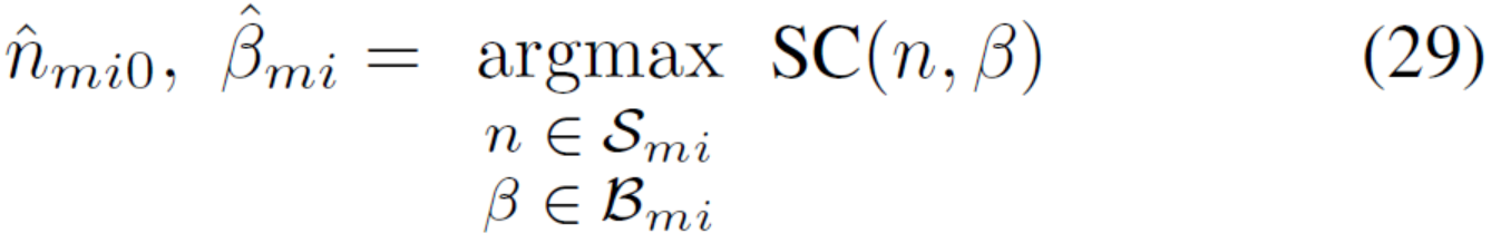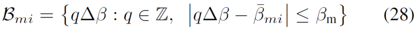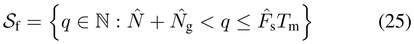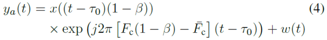 设vlos为卫星和接收机之间速度的大小,假设在一个区间Tf为恒定值,并让β ≜ vlos/c,其中c是自由空间光速。注意在发射器和接收机时钟之间缺乏频率同步,效果与运动产生多普勒相同。在下文中,我们将β视为参数化运动的加性效应和时钟误差诱导的多普勒,我们将β称为载波频率偏移(CFO)参数。
