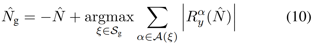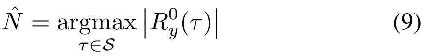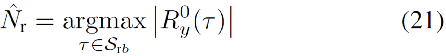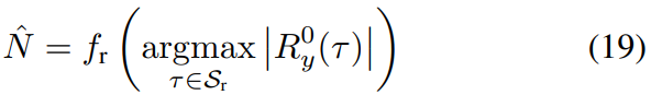 给定Ry(n, τ)的性质,函数Rαy(τ)仅当τ =N且α是来自集合A(N+Ng)的循环频率之一时为非零。这一事实是遵循N和Ng的估计量。设S是可能的集合N的值。然后得到N的估计量为: