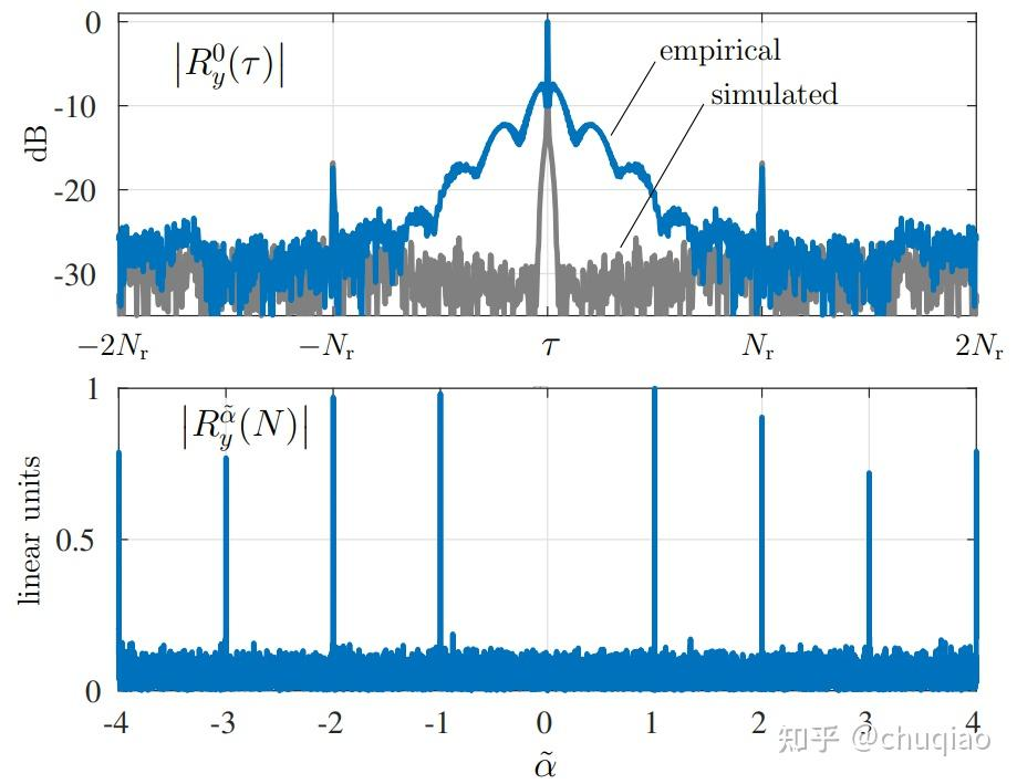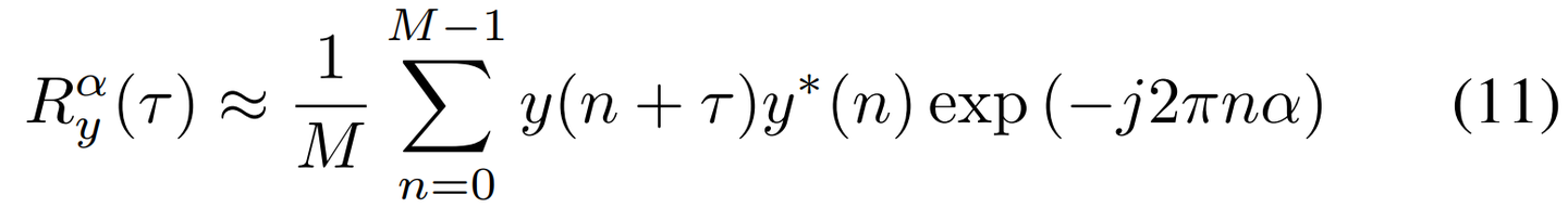 观察到两个估计都基于(8)中给出的循环自相关函数。实际上,此函数近似为: