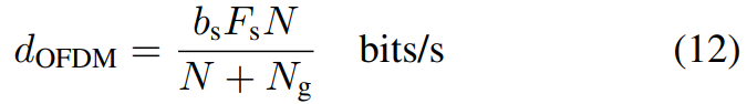 这里,bs是每个符号的位数(例如,2表示4QAM调制)。观察到,对于给定的F和bs,增加dOFDM意味着增加N/Ng。但Ng是信道的物理特性决定的下界:它必须是足够大,以确保Tg = Ng /Fs超过信道的传播延迟。因此,设计者有动力增加N。尽可能最大化吞吐量。但他们必须尊重与子载波间距相关的N的实际上限F =Fs/N:较窄的F对CFO估计提出了更高的要求。设是接收者估计的CFO参数误差β。为避免载波间干扰(ICI),降低BER,必须满足: