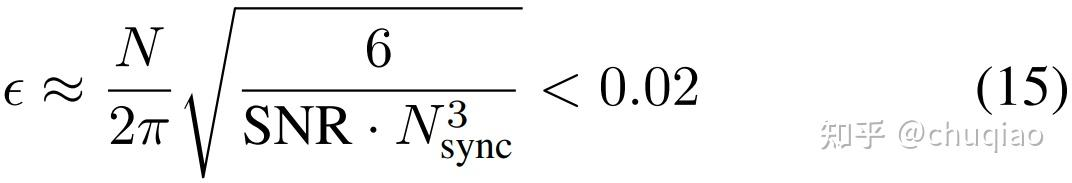 设计人员希望最小化Nsync,因为专用于同步的样本确定性不携带信息。假设Nsync=210,SNR =10dB。那么N必须满足N<5316以确保ε<0.02。